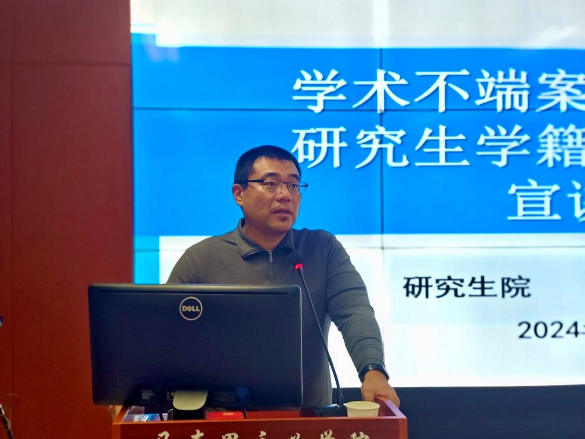 王全伟围绕我校研究生基本管理政策,对学术不端行为进行了深入讲解与分析。首先,他对学术不端行为的定义进行了阐释,并结合近年来学术不端典型案例,详细分析了学术不端行为的常见类型及其带来的严重后果。其次,他强调,预防学术不端行为的关键在于创新思维的培养,这不仅能够从源头上遏制学术不端行为,也是实现科研健康发展的长远之计。最后,王全伟对我校关于研究生学位管理的相关政策进行了梳理,包括修业年限、毕业要求以及研究生毕业等相关政策。他指出,学术不端行为的控制与预防需要依托于学校的日常管理制度,并鼓励同学们深入了解与学业相关的政策,明确毕业要求,在恪守学术道德的前提下顺利完成学业。