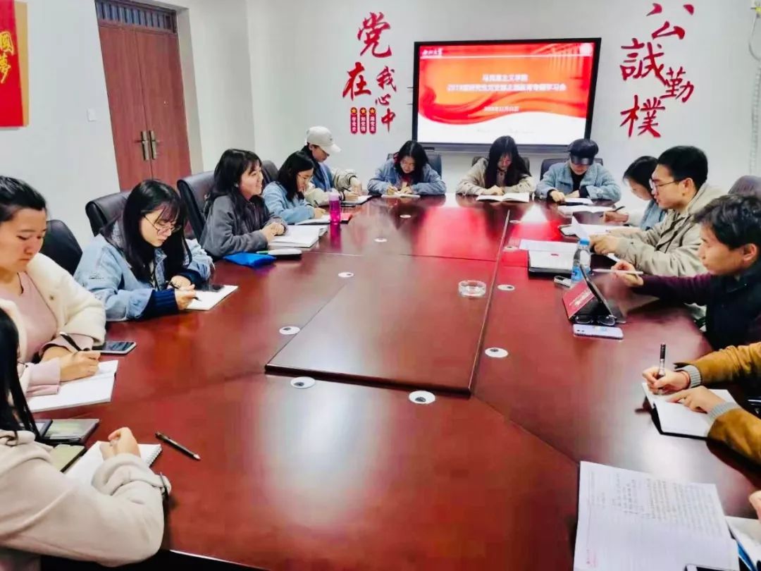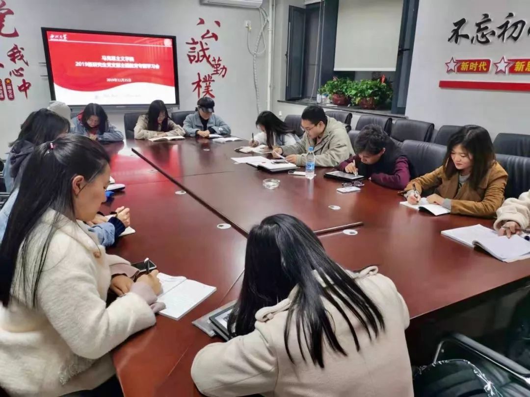 根据“不忘初心、牢记使命”主题教育领导小组印发的《关于开展第二批“不忘初心、牢记使命”主题教育的指导意见》,为落实校党委《365英国上市网站官网关于“不忘初心、牢记使命”主题教育的实施方案》和365英国上市网站官网党委《“不忘初心、牢记使命”主题教育工作方案》的安排,365英国官网2019级研究生党支部于11月21日晚,在西学楼1201党建活动室开展了“对党说句心里话”主题党日,并进行了主题教育专题学习会。会议由支部书记赵凯凯同志主持,支部全体党员、预备党员、入党积极分子和2019级共青团员代表参加了此次会议。