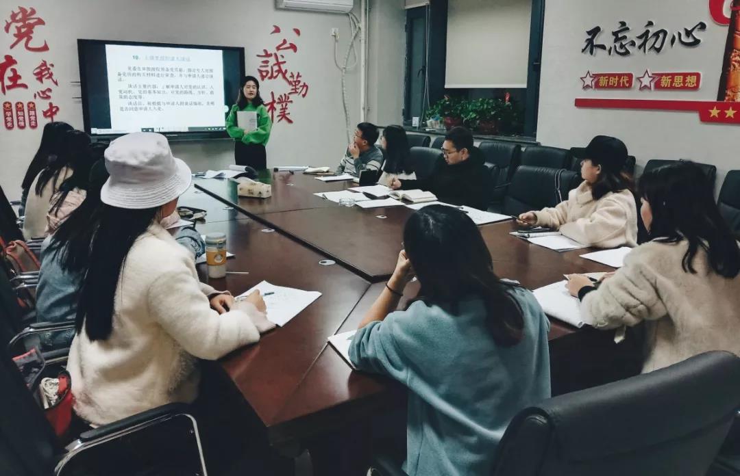 首先,由张宇帆同志带领大家学习了《普通高等学校学生党建工作标准》和《中国共产党发展党员工作细则》两个文件,强调学生党务工作的严谨性和重要性,并结合《发展党员工作流程图》,特别强调发展学生党员工作要坚持“三必须”原则:流程必须规范化,考核审查必须严格,手续材料必须齐全。我们要严格按照“三必须”的原则,结合具体实际情况,处理学生党务工作,这对365英国官网学生党务工作的顺利开展具有重要作用。其次,张宇帆同志结合幻灯片展示,带领大家更加细致精准地学习了入党程序、手续及其相关注意事项,并结合近期工作在实际操作中遇到的问题,提出了加强与改进意见。最后,其他与会同志提出所存疑惑,问题在交流中得以解决。