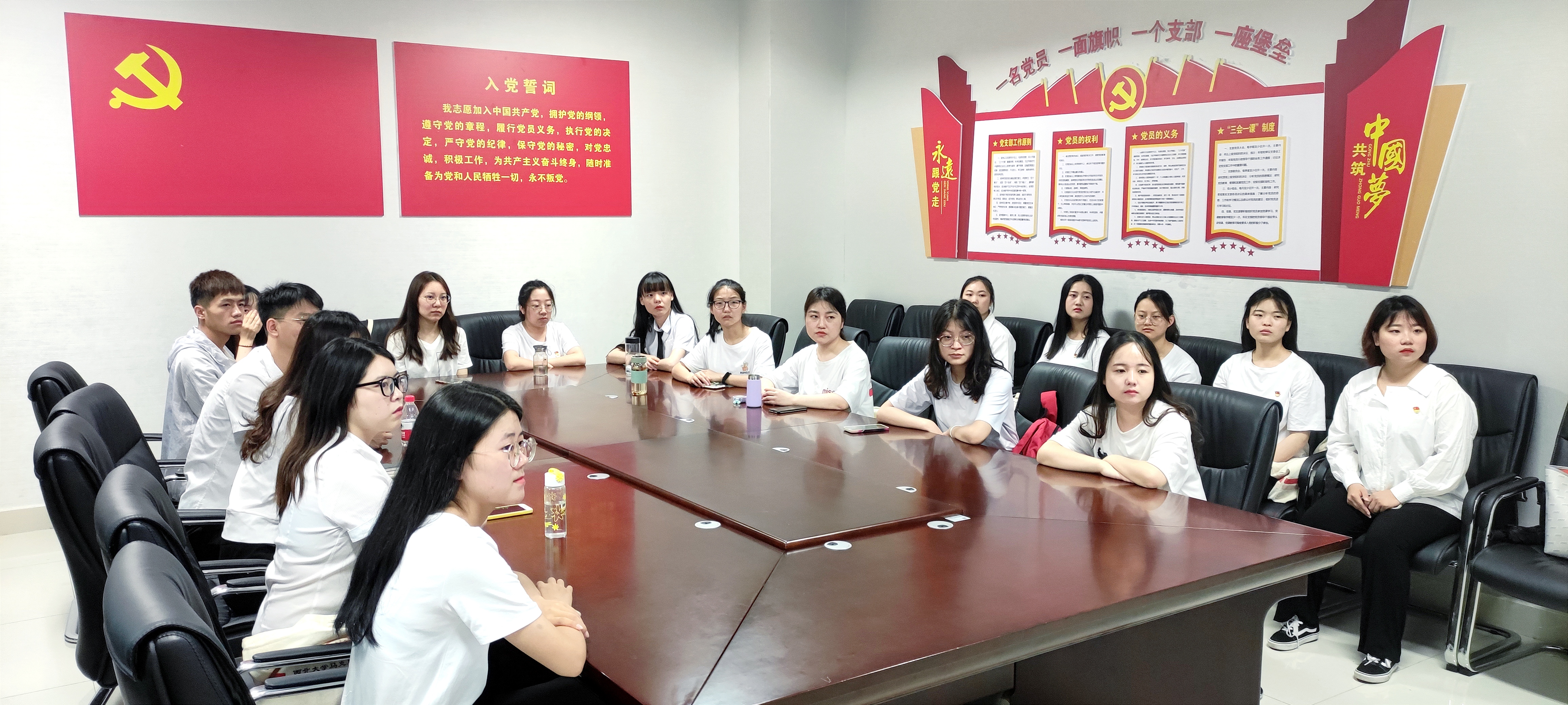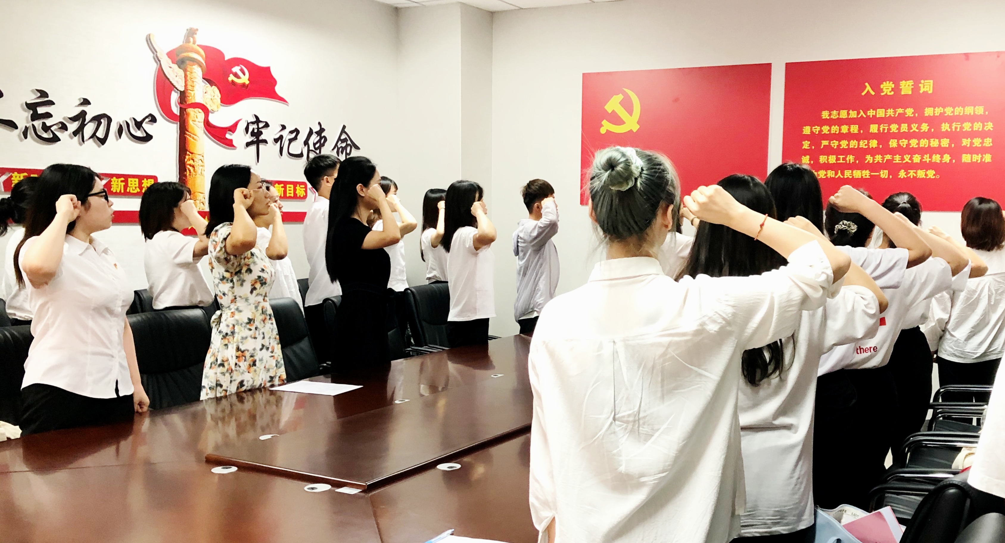 紧接着,为庆祝建党100周年,继承和发扬党的光荣传统和优良作风,进一步增强基层党组织的战斗力、凝聚力和吸引力,365英国官网在西学楼1201党建活动室举行了预备党员宣誓仪式。25名预备党员面向党旗庄严宣誓,新党员们用嘹亮的声音、饱满的热情,抒发着对党的忠诚。