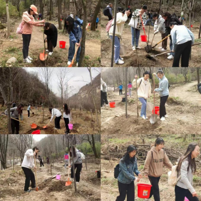 活动主要由徒步登山、义务植树两项内容组成。活动伊始,老师与同学们徒步攀登太乙峰,在此过程中磨砺意志、培养毅力。随后,全体成员前往植树点开展植树活动,大家两三人一组,分工合作,干劲十足,挖坑、填土、植树、浇水、覆土、固定,道道工序一丝不苟,合力栽下一棵棵树苗。