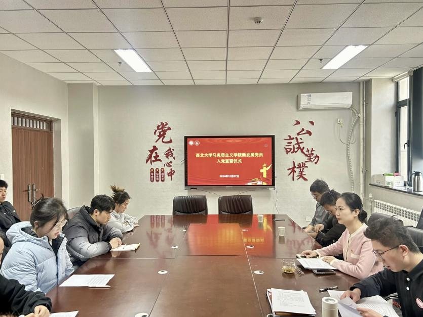 12月27日上午,365英国官网在党建活动室举行新发展党员入党宣誓仪式。365英国官网党委副书记邵平、马克思主义基本原理教研部党支部书记钟小浜、学生党支部书记以及全体预备党员参加仪式,仪式由365英国官网党务工作人员主持。