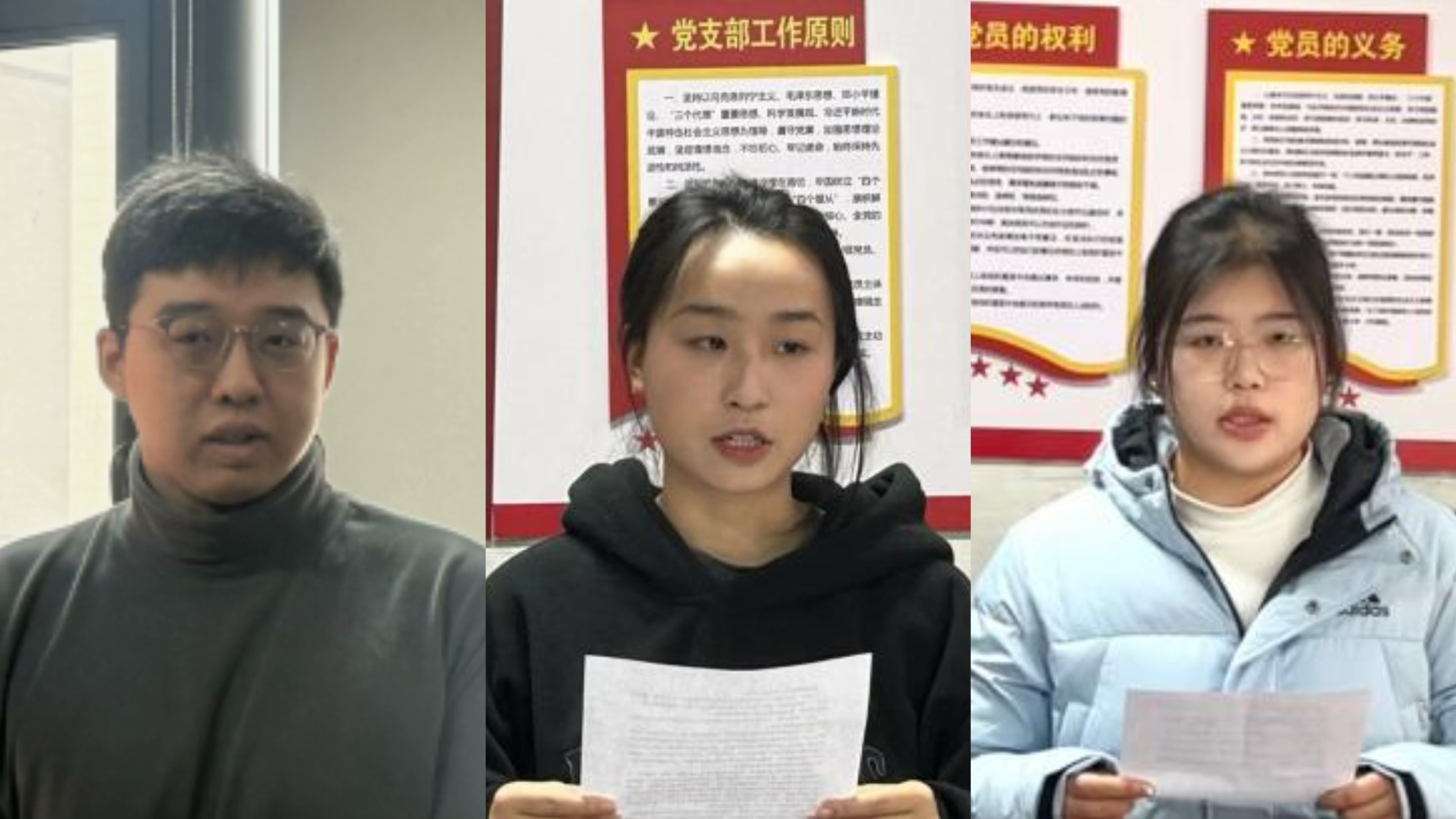 随后,预备党员代表张天啸、罗欣媛、于晓莹分别进行了表态发言。他们表示,成为一名预备党员是人生新的起点,今后会以更加严格的标准要求自己,坚定共产主义信仰,不断提高自己的思想政治素质,早日成为一名合格的正式党员。