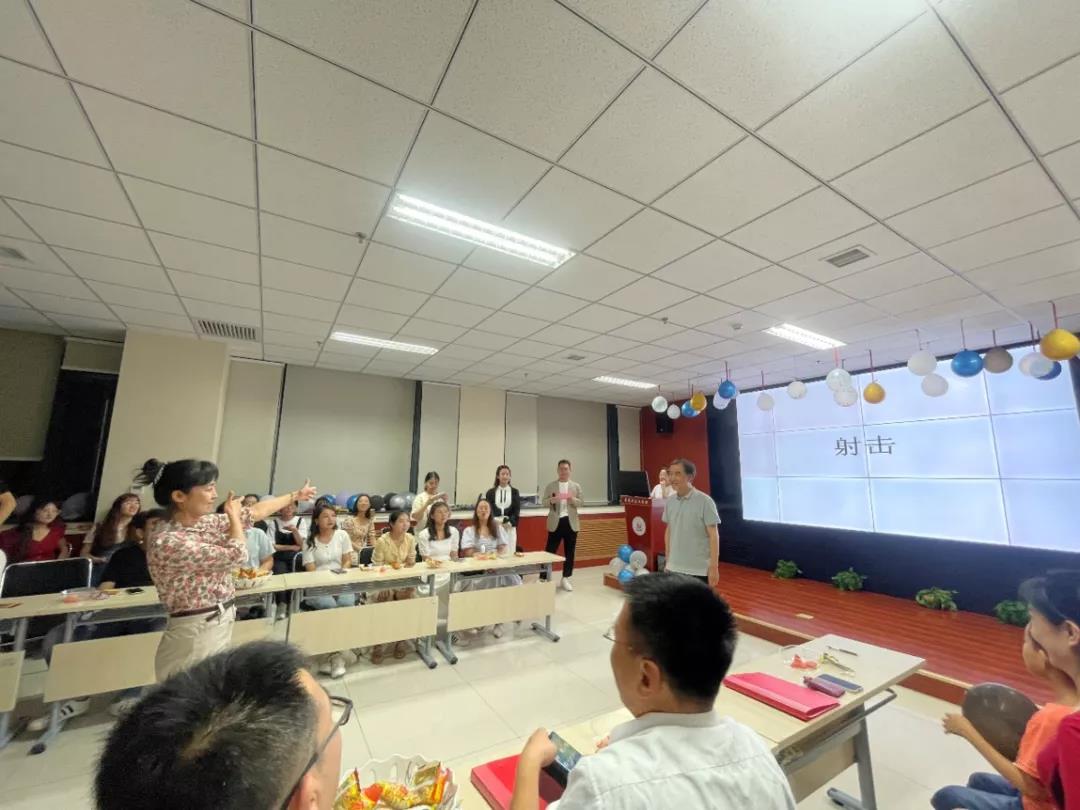 两轮热烈的表演结束后,开始了第二个游戏环节——你来比划我来猜,共产生教师队伍两组,学生组两队。老师们和蔼可亲的笑容,憨态可掬的动作和亲切的互动为大家带来了欢声笑语,比赛过程妙趣横生。