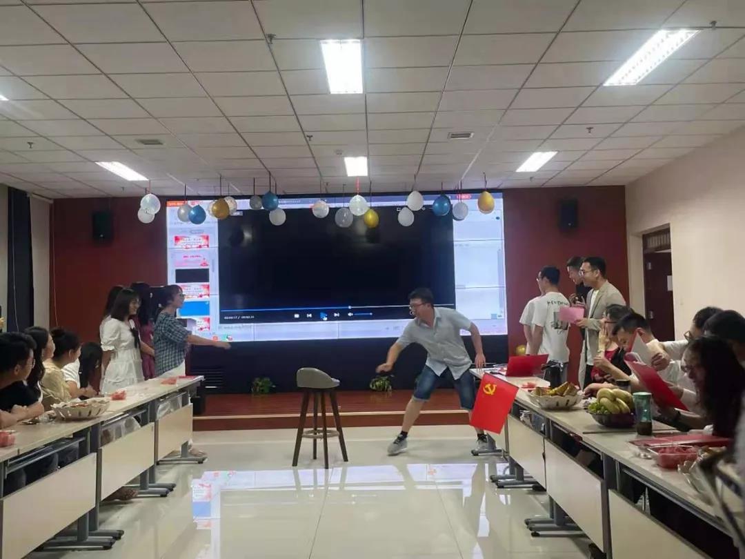 活力四射的舞蹈之后,迎来了本次晚会的第一个游戏环节——歌曲接龙。在(吃)场(瓜)观(群)众(众)的呼声下,一共产生了男生队和女生队2支参赛队伍,男生队虽拔得头筹,但在女生队奋起直追的强烈攻势下,最终还是败下阵来。为给男生队加油打气,董笑寒老师演唱了《匆匆那年》,赢得台下观众热情合唱;张晖老师演唱了《国际歌》,祝愿大家不忘初心、牢记使命;杨权利老师深情演唱了《爱恋依》,其扎实的歌唱实力获得现场欢呼声与掌声不断。