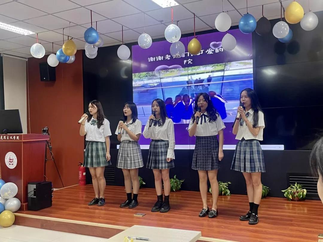 最后,是由王璐、肖洋、黄怡、寇嘉钰、郭子钰带来的合唱《凤凰花开的路口》,伴随着记录2021届毕业生生活、学习点点滴滴的视频,记忆里的笑与泪流淌于歌声中,此去不知相聚何期,但爱长留心中。