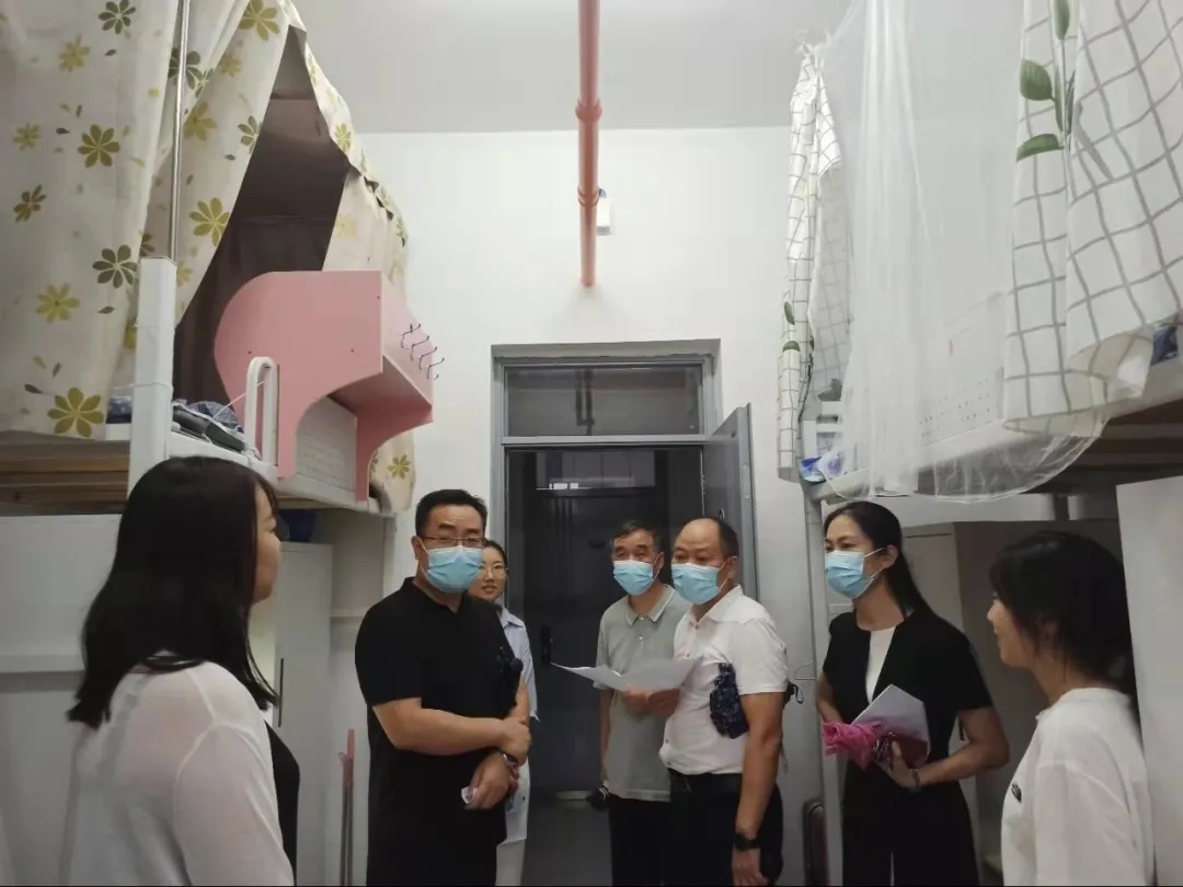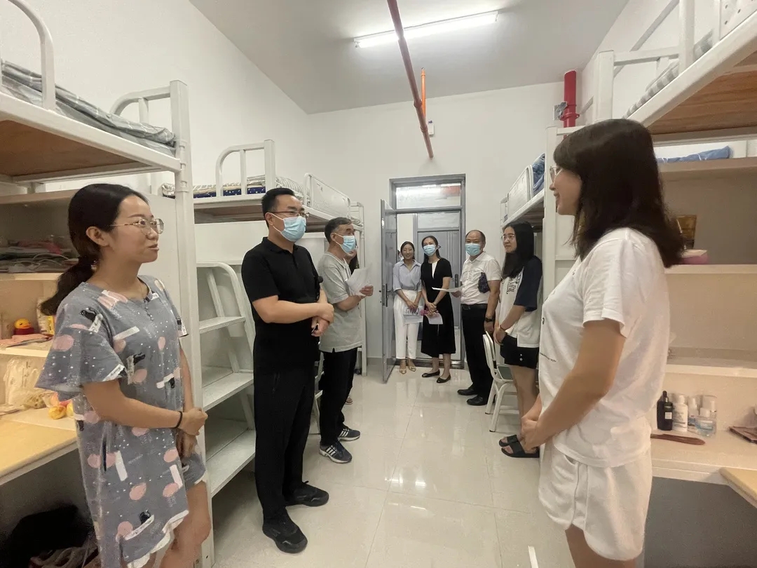 9月3日下午,365英国官网党委书记刘杰、常务副院长王强、党委副书记邵平、副院长李建森、辅导员刘娟一行来到研究生公寓看望2021级新生。