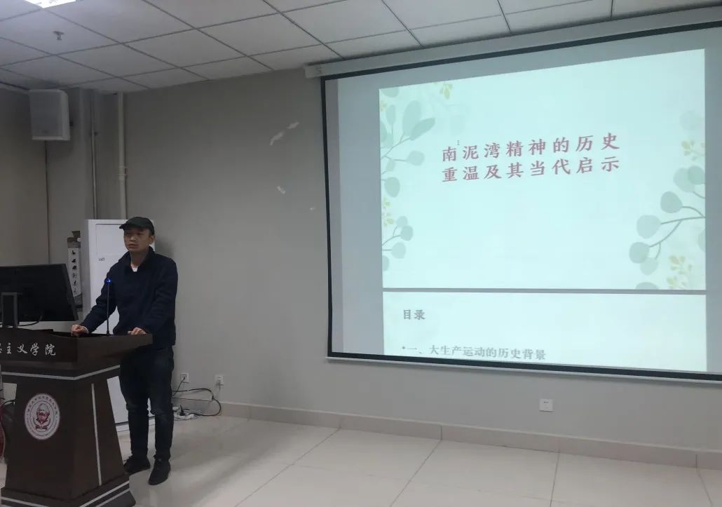 郭朔宁同学以《南泥湾精神的历史重温及其当代启示》为主题,从历史背景、具体内涵、当代启示三个方面介绍了南泥湾精神及其当代价值,强调我们作为新时代青年,要积极传承和发扬南泥湾精神,从中汲取前行力量,敢为人先,开拓创新,为实现伟大复兴的中国梦不懈奋斗。