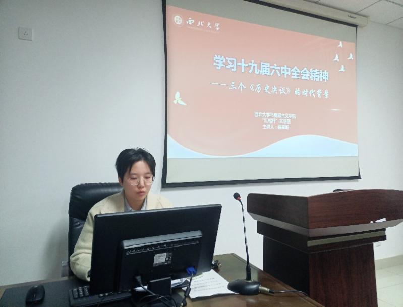 骆家昕主讲的主题是《学习党的十九届六中全会精神——三个“历史决议”的时代背景》,她以1945年通过的《关于若干历史问题的决议》和1981年通过的《关于建国以来党的若干历史问题的决议》的时代背景为线索,分析了两个历史决议制定的必要性及其意义,同时着重解读了党的十九届六中全会通过的《中共中央关于党的百年奋斗重大成就和历史经验的决议》,以“两个一百年交汇期”和“百年未有之大变局”为切入点,深入浅出地分享了学习《决议》精神的心得,引导青年学子们要珍惜青春美好年华、抓住历史机遇,以实际行动践行初心使命。