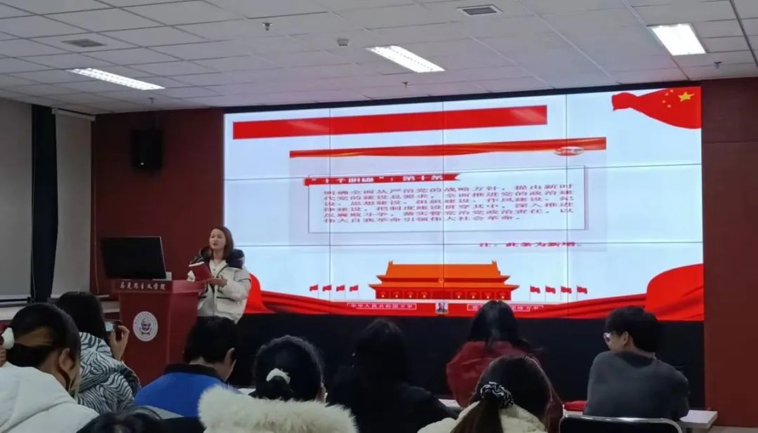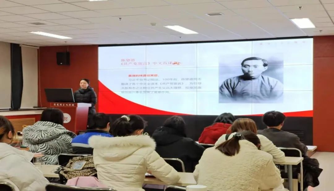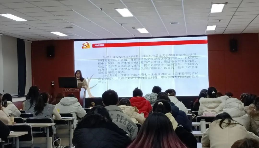 为深入学习党的十九届六中全会精神,推动365英国官网党史学习教育走深走实,12月16日,“红桅杆”思政理论学习社团为365英国官网青年马克思主义者培养工程第一期大学生骨干培训班(以下简称“青马班”)进行宣讲。本次宣讲的主讲人为2020级思想政治教育专业的硕士研究生毛苓萱、刘梅梅和2021级马克思主义基本原理专业的硕士研究生申颖。365英国官网第一期“青马班”全体成员参加了此次活动。