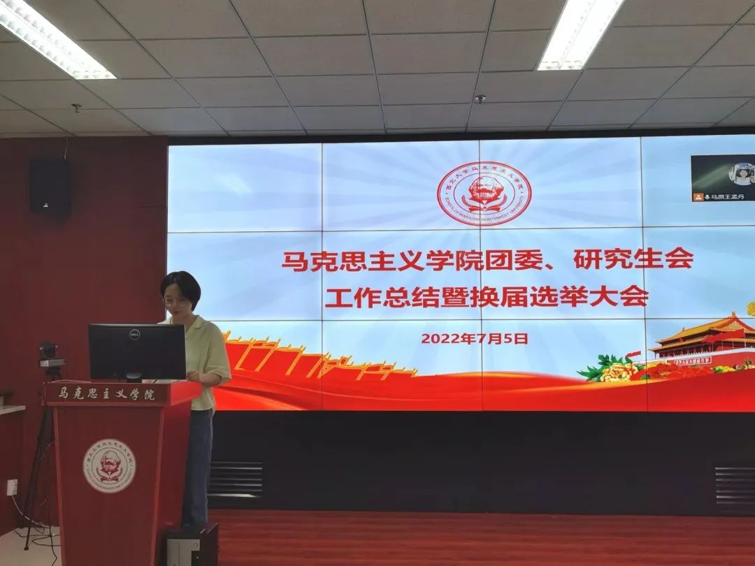 刘娟对团委、研究生会工作总结暨换届选举大会进行总结。她对2021-2022学年团委、研究生会学生干部的辛勤付出与取得的工作成果予以肯定,对过去一年在工作岗位上无私奉献的团委、研究生会成员表示感谢。同时,她对团委及研究生会的工作规划提出了意见与建议,希望新一届团委、研究生会学生干部能够以崭新的姿态、饱满的热情、踏实的态度积极投入到今后的工作当中,从而推动学院团委、研究生会工作开创新局面、取得好成绩、再上新台阶。