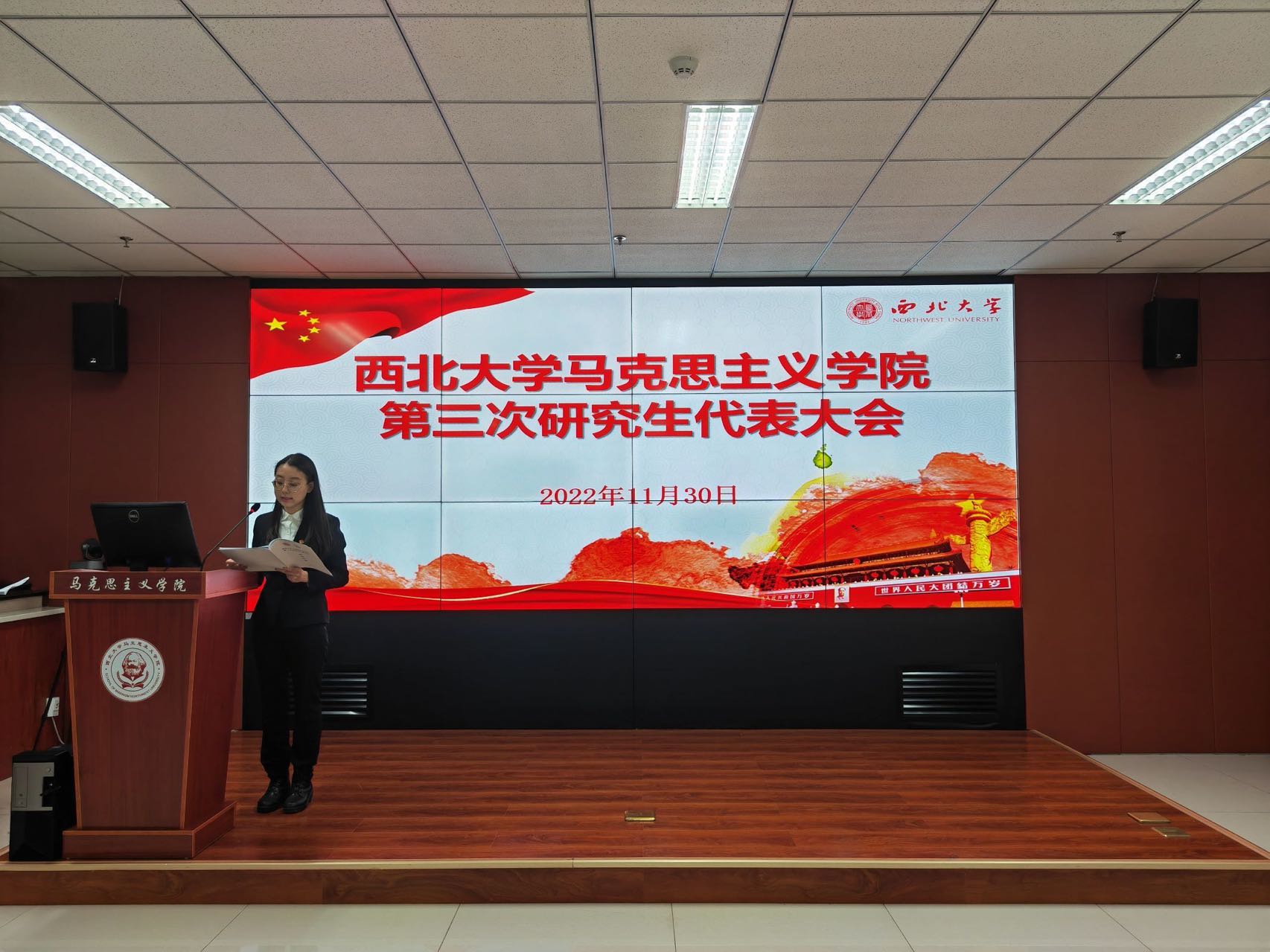 11月30日下午,365英国上市网站官网第三次研究生代表大会正式开幕,全场起立高唱《中华人民共和国国歌》。