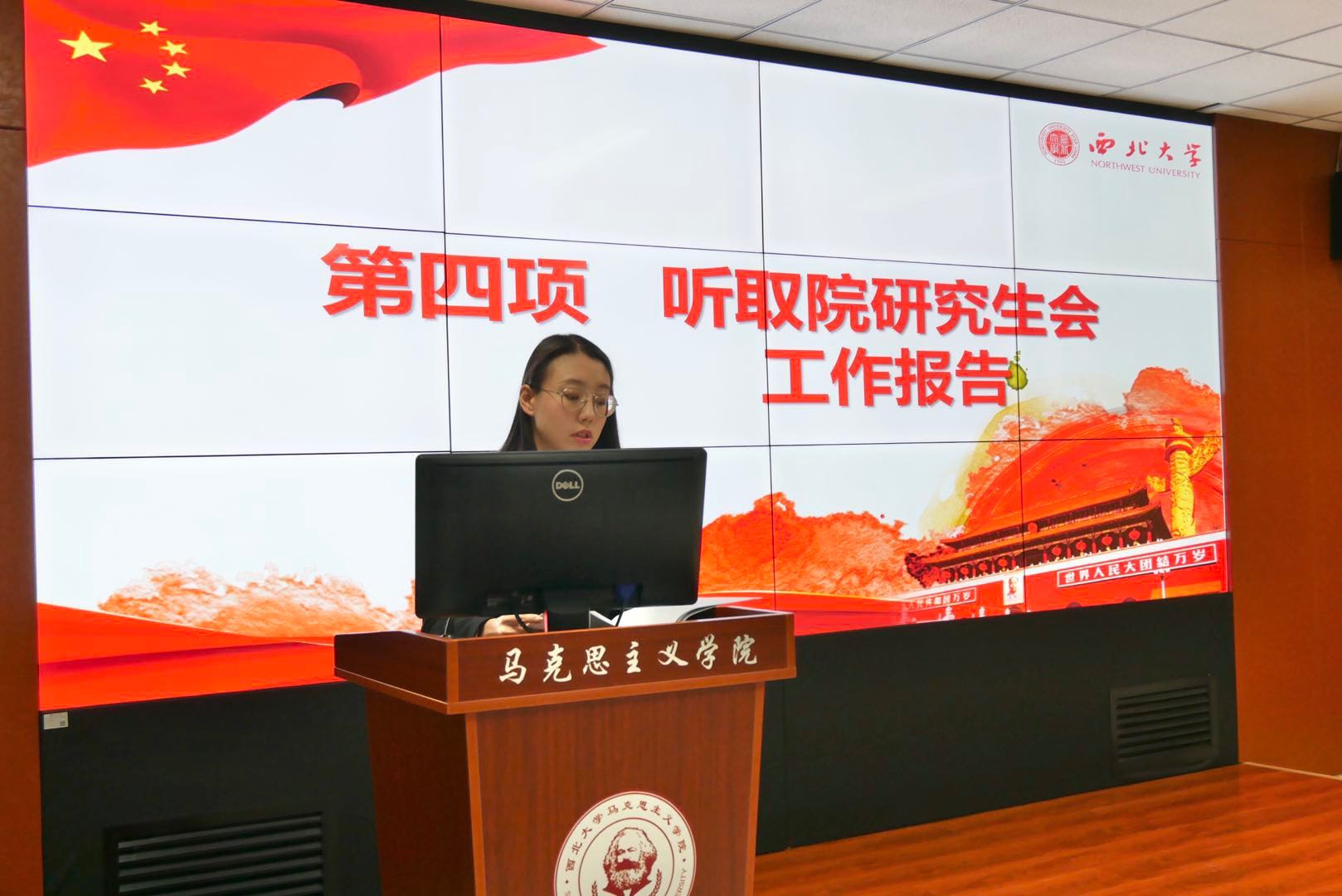 史若毓代表院研究生会作了题为《青春奋进正当时聚力扬帆再出发--团结带领全院研究生在实现中华民族伟大复兴中国梦的进程中书写青春篇章》的工作报告。报告回顾了过去一年研究生会在丰富价值引领、深化组织改革、搭建服务平台、完善育人体系等方面的工作情况。她表示,学院研究生会将继续坚守服务同学的初心,紧跟时代步伐,引领同学们为实现中华民族伟大复兴贡献青春力量。