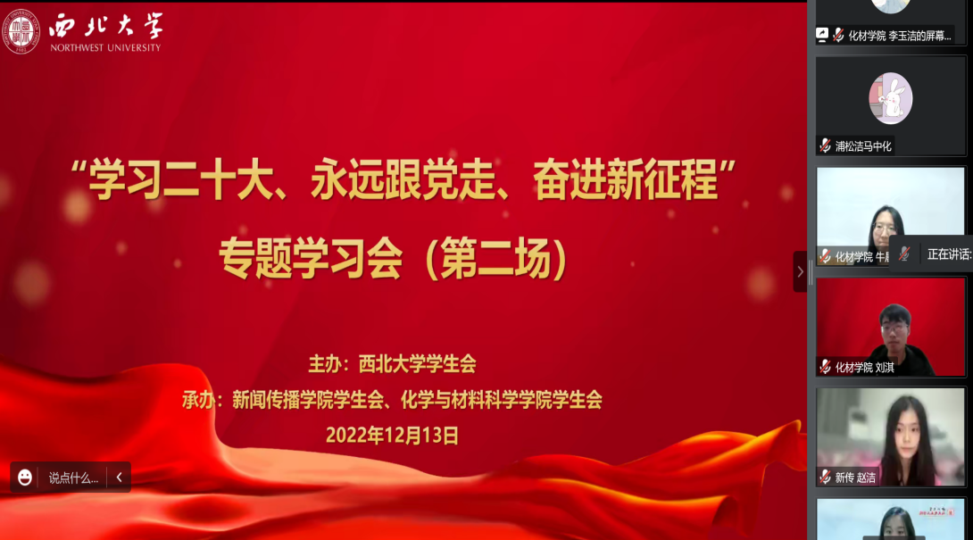 随后,来自化学与材料学院和新闻传播学院的两位同学就宣讲内容交流了自身的学习心得体会。在同学们热烈的讨论中,本次宣讲活动圆满结束。