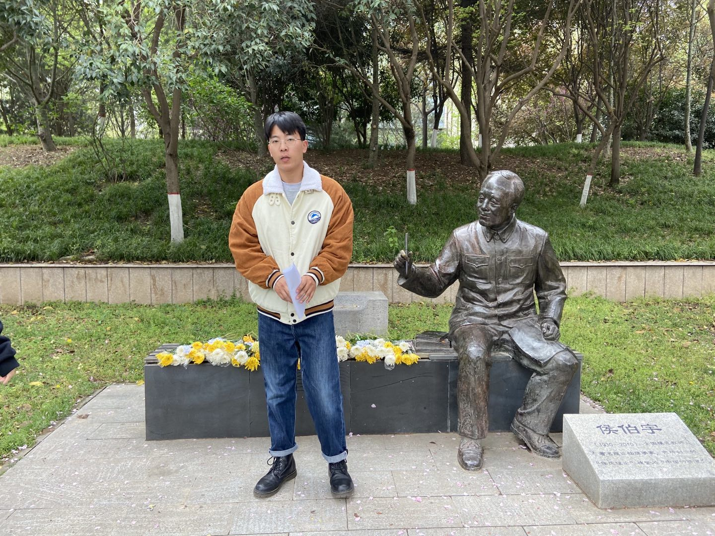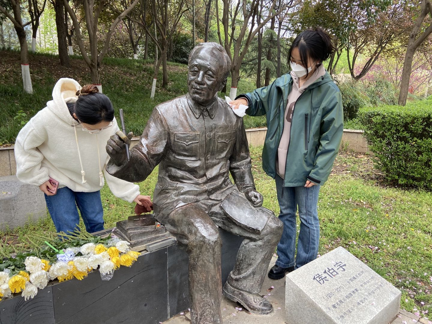 丰碑长在,英烈永存。坚定理想信念,继承先烈遗志。活动开始,团员代表擦拭了三位先生的雕像,全体同学默哀以表最崇高的敬意。“红桅杆”思政理论学习社团刘天霖、李雨潇、张凡凡三位同学分别为大家讲述了侯伯宇先生、李仪祉先生和张凤翙先生的事迹。