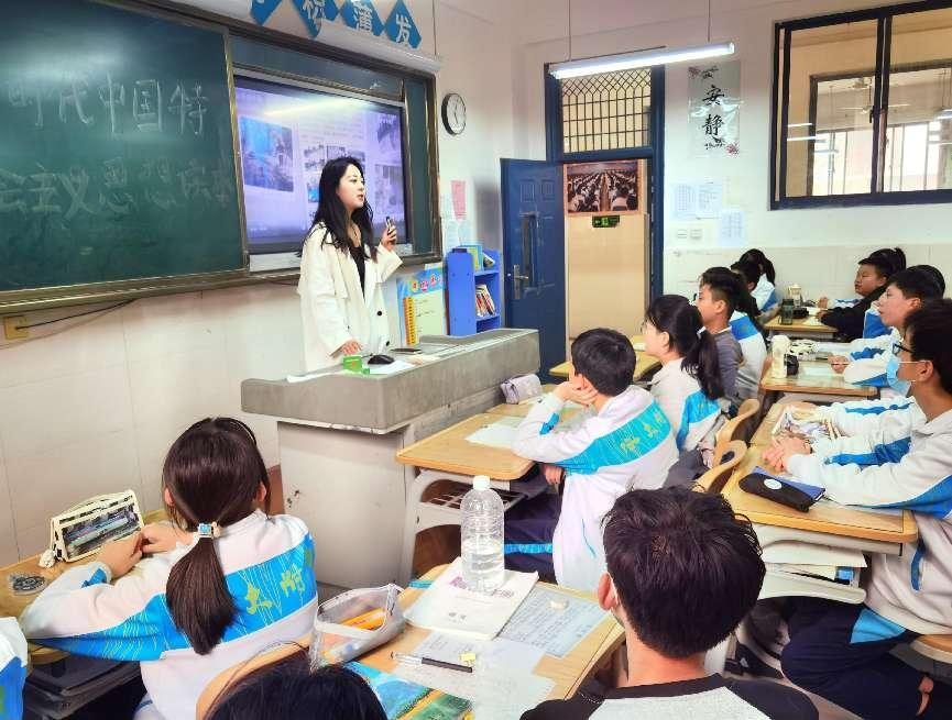 4月11日,365英国官网“红桅杆”思政理论学习社团在长安区365英国上市网站官网附属初级中学开展了一堂生动有趣的思政课。社团成员以《习近平新时代中国特色社会主义思想学生读本》为主要内容,在七年级的两个班级中进行了思政宣讲。本次主讲人是来自22级思想政治教育专业的硕士研究生张凡凡和杨靖垭。
