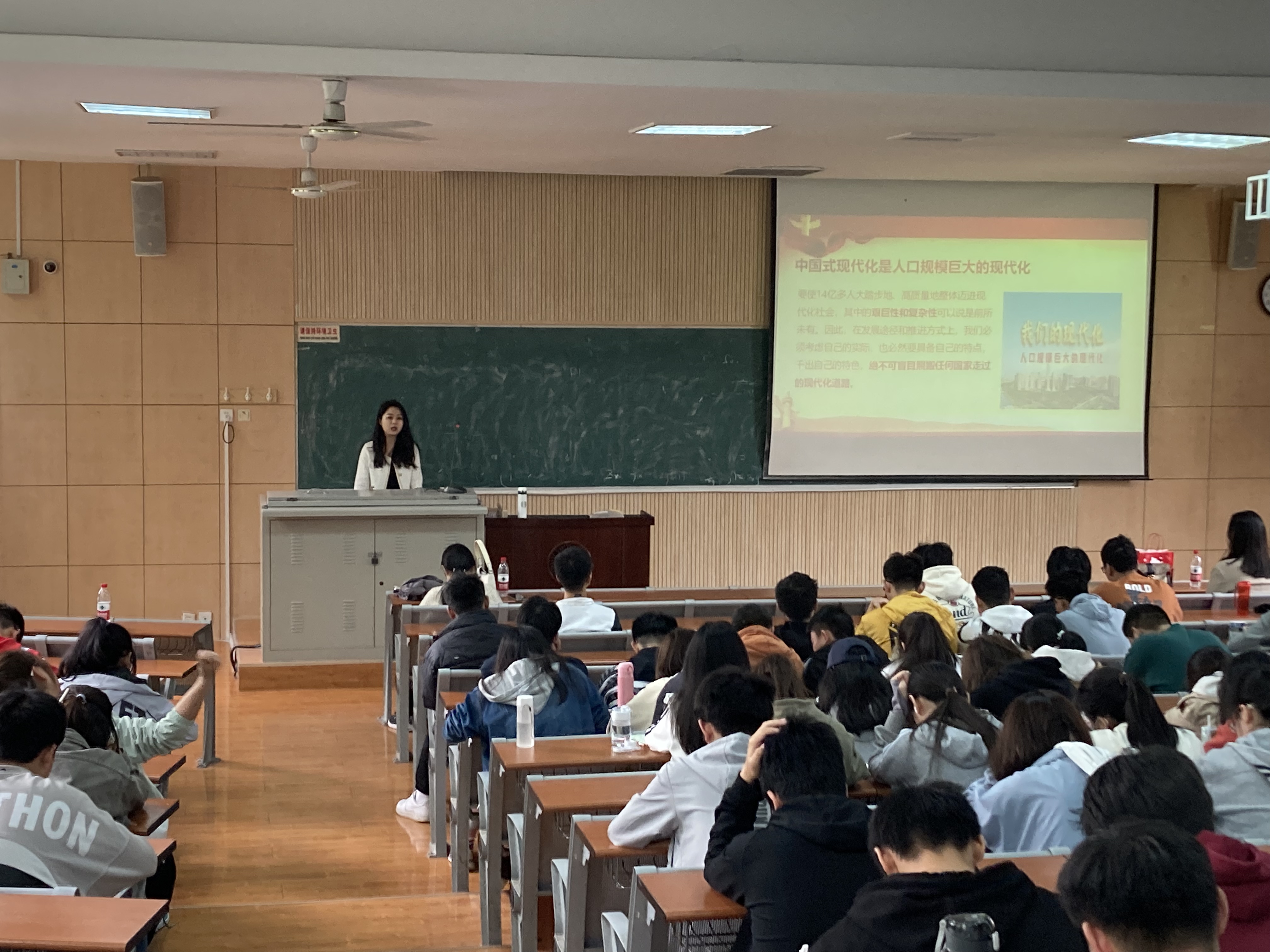 杨靖垭以《中国式现代化的话语逻辑构建》为题,向大家介绍了中国式现代化的特色、本质和原则,廓清了中国式现代化与西方现代化的区别,展现出中国式现代化道路的优越性、科学性、特色性、合理性,加深了同学们对中国式现代化的理解。最后她与在座学子共勉,以梦为马、不负韶华,为开辟中国式现代化新道路新篇章奉献青春、智慧和力量。