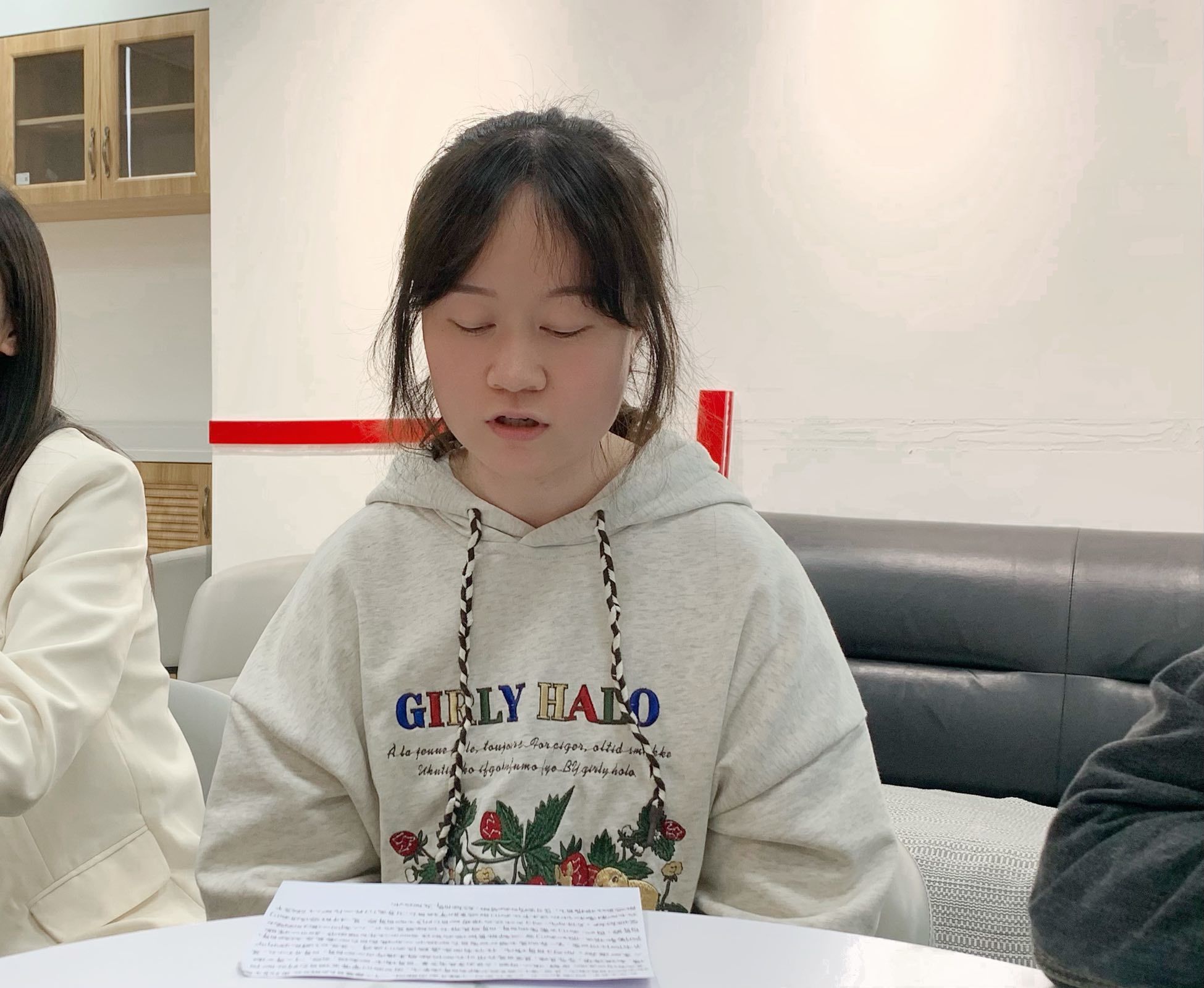 武雅智同学就书中“自卑情结”这一部分与大家进行了分享。她谈到,如果在面对一个棘手的问题时,一个人感觉自己无能为力,由此产生的情绪就叫自卑情结,而我们每个人或多或少都有自卑情结。因此,她鼓励同学们要重新审视自己,学习发挥自我的潜能,超越自卑,走向成功。