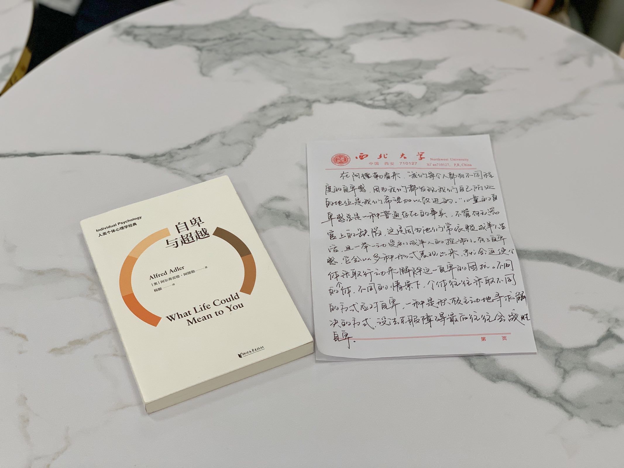 刘志晨同学谈到,书中关于生命意义、人格动力以及早期记忆的一些看法给了自己很大启发,启发自己如何看待自己的过去,如何评价自己目前的所作所为,如何发展未来的自己。他鼓励大家以一种新的视角去看待“人生课题”,更好地审视自己,了解自己,更好地在与他人的互动合作中生活。