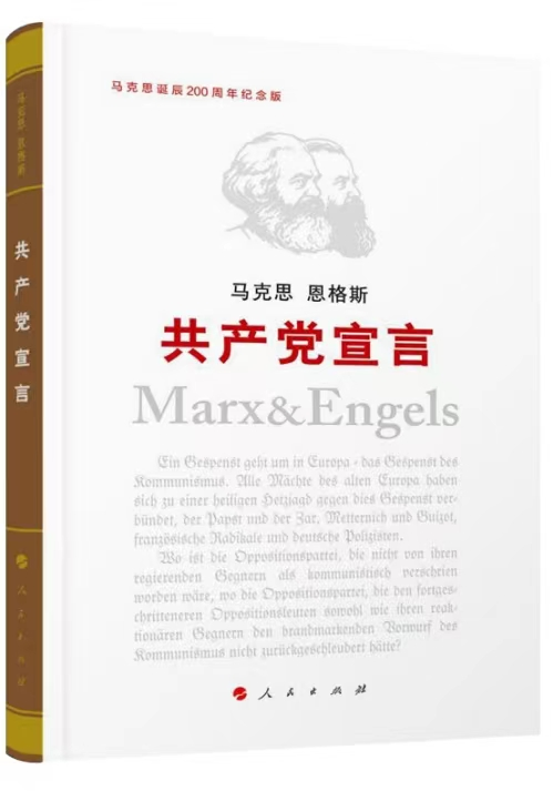 今天,我为大家推荐的书是《共产党宣言》。《共产党宣言》是马克思、恩格斯为共产主义同盟撰写的纲领,在这个纲领性文献中,马克思、恩格斯科学地评价了资产阶级的历史作用,揭示了资本主义的内在矛盾,论述了无产阶级作为资产阶级的掘墓人的伟大历史使命,揭示了资本主义必然灭亡和共产主义必然胜利的历史规律。《共产党宣言》的问世标志着世界范围的社会主义从空想变为科学,标志着马克思主义的诞生。从此,《共产党宣言》被世界各国广泛翻译,成为推动世界共产主义运动最重要的理论法宝,成为近现代史上影响最大的政治文献之一。1920年8月,陈望道翻译的第一个中文全译本《共产党宣言》出版问世,《共产党宣言》成为中国共产党人信仰的起点,影响大批仁人志士和革命先驱。