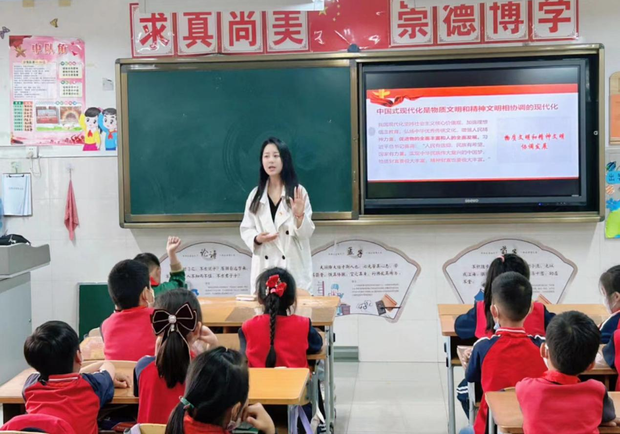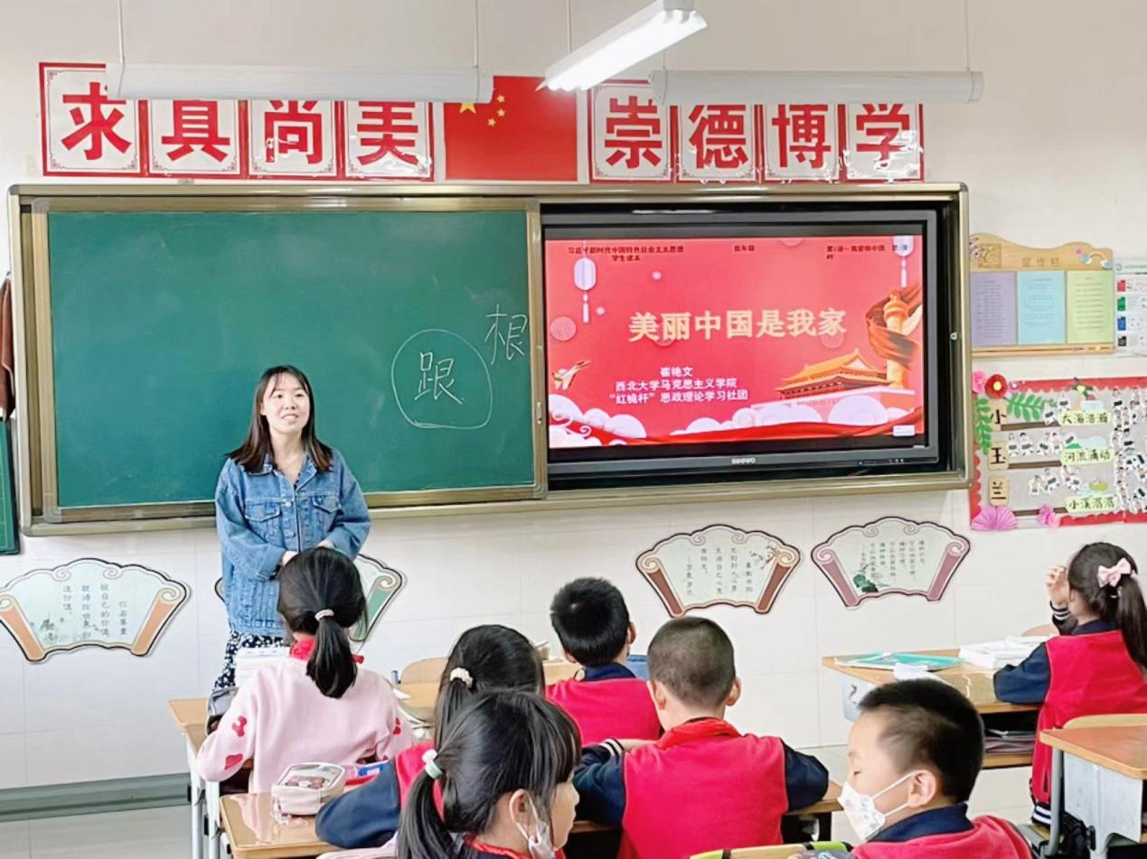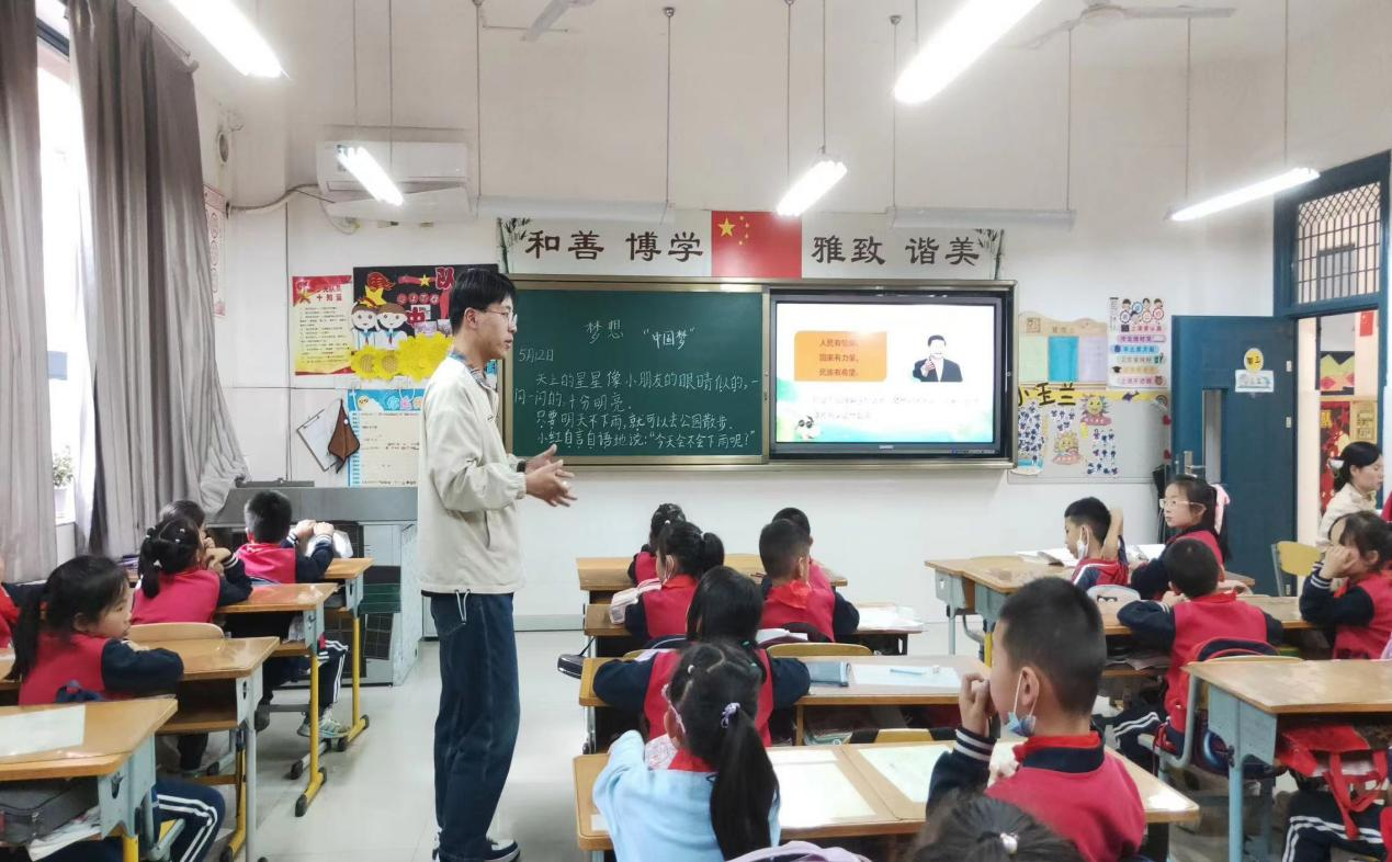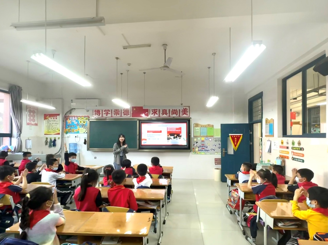 5月12日,365英国官网“红桅杆”思政理论学习社团以《习近平新时代中国特色社会主义思想学生读本》(小学低年级)为主要内容,在365英国上市网站官网附属小学为二年级的小学生开展思政课教育。本次活动的主讲人分别是来自21级和22级的马克思主义基本原理、思想政治教育、马克思主义中国化研究的10位硕士研究生。