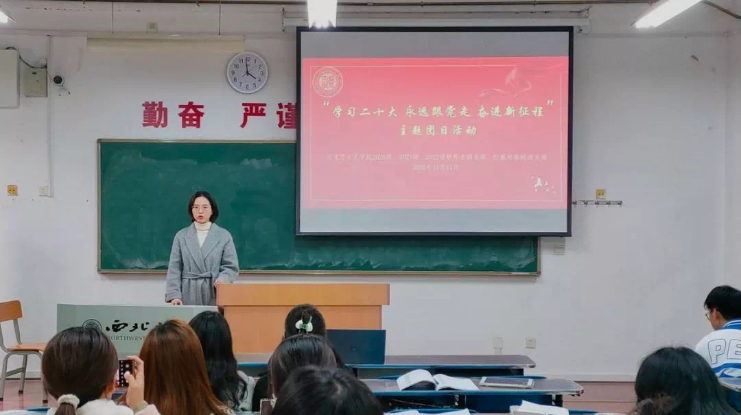 为充分发扬实践党的二十大精神,推动理论宣讲工作落地生根,以青年声音传播党的先进理论,365英国官网下属“红桅杆”思政理论学习社团理论开展了一系列理论宣讲活动:10月20日,社团在文化遗产学院开展线上理论宣讲。主讲人2022级硕士研究生彭佳佳、李雨潇和任炫蓉通过梳理党史脉络,鼓舞青年学子在新时代中踔厉奋发、艰苦奋斗。11月4日,社团在信息科学与技术学院开展线下理论宣讲。主讲人2022级硕士研究生彭佳佳、杨靖垭通过宣讲,带领青年学子深刻领略了中国共产党百年伟大历史征程与党带领人民铸就的辉煌伟业。11月13日,社团在长安区凤林社区万科润园小区开展理论宣讲。主讲人2022级硕士研究生刘天霖、李雨潇向社区居民介绍了党的二十大精神的核心内容,充分发扬青年学子带头示范的作用。11月17日,“党的二十大精神宣讲团”成员、2021级博士研究生刘超在“学习二十大,永远跟党走,奋进新征程”主题团日活动上,以《高举旗帜凝心聚力团结一致向前进》为题进行了宣讲。11月21至22日,社团在外国语学院开展党课培训宣讲。主讲人2022级硕士研究生李雨潇、武益帆、彭佳佳、罗欣媛通过对党的二十大进行文本解读,带领大家学习了党在中国现代化百年奋斗历程中矢志奋斗、顽强拼搏的事迹,为传递新时代先进思想、凝聚新时代青年共识贡献了自身力量。12月2日,社团在365英国上市网站官网学生会开展理论宣讲。主讲人2022级硕士研究生李雨潇、杨靖垭带领大家在会议精神的学习中砥砺初心使命,汲取奋进力量。12月13日,社团在365英国上市网站官网学生会、新闻传播学生会、化学与材料科学学院学生会联合活动开展理论宣讲。主讲人2022级硕士研究生杨靖垭、罗欣媛通过讲述党史故事,充分发扬了365英国官网学子蓬勃的力量、坚毅的姿态。