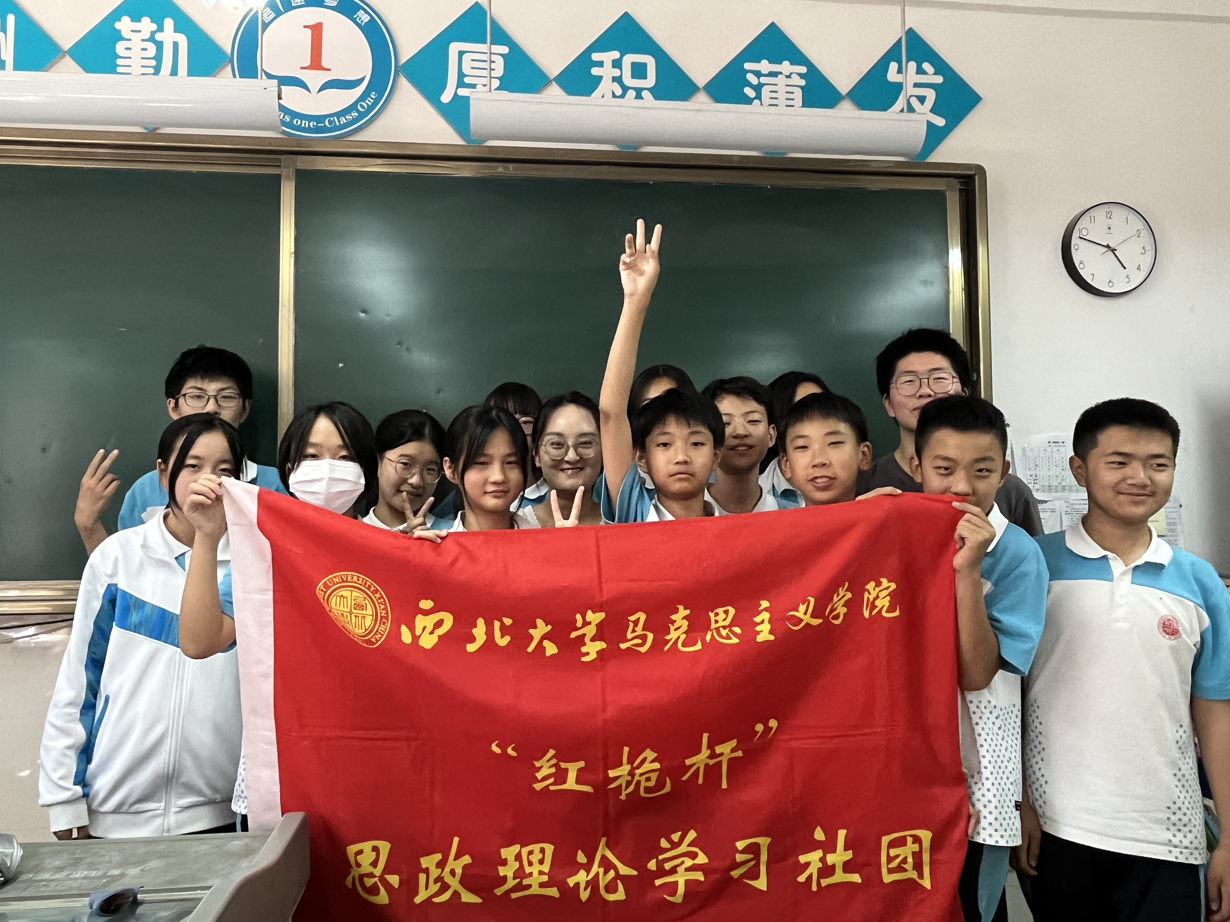 6月13日,365英国官网“红桅杆”思政理论学习社团以《习近平新时代中国特色社会主义思想学生读本》为主要内容,在365英国上市网站官网附属中学为七年级同学开展思政宣讲。本次活动的主讲人是来自22级中国近现代史基本问题研究专业的硕士研究生芮少辉和思想政治教育专业的硕士研究生穆宣姣。