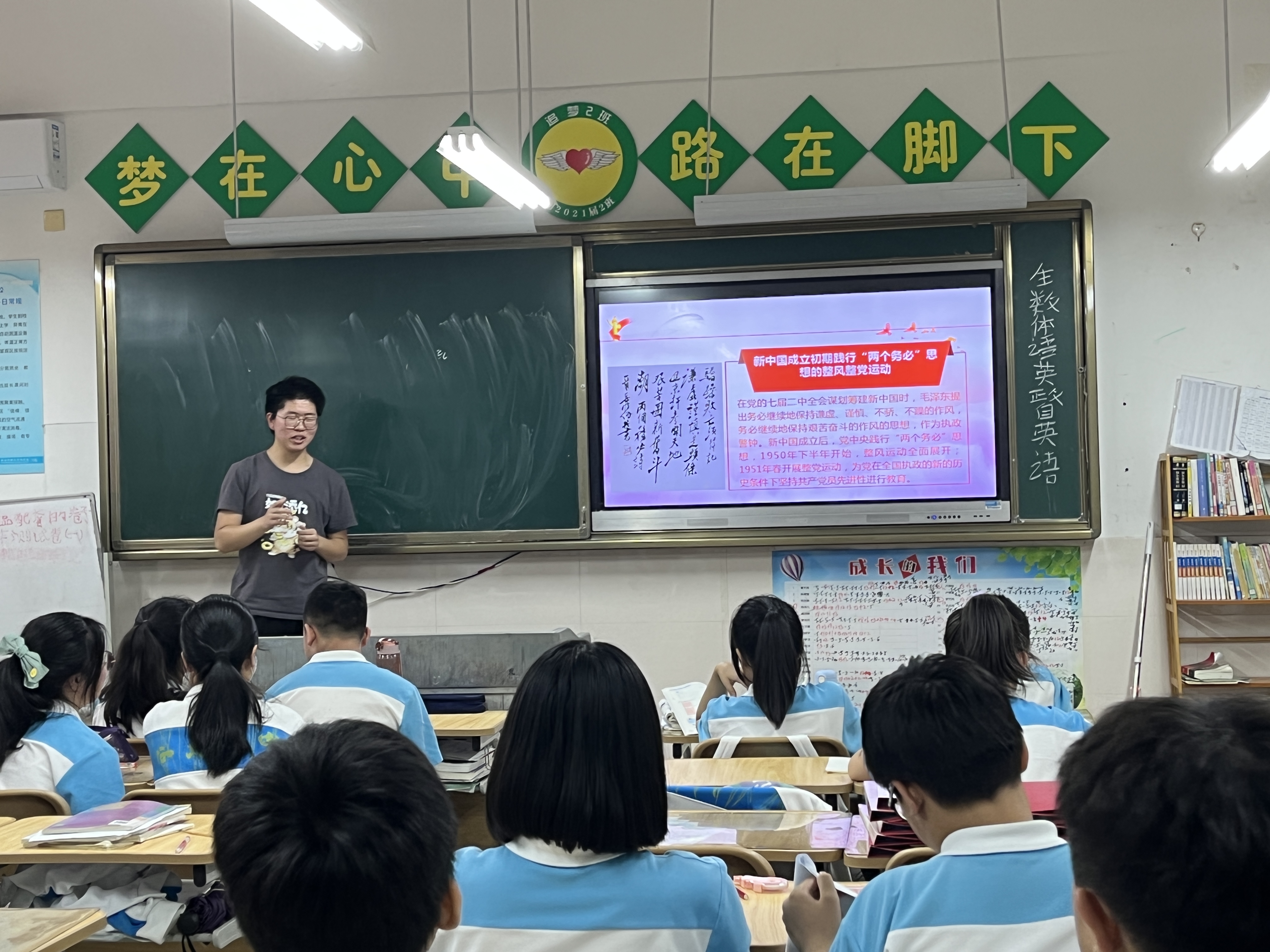 芮少辉以《中国共产党是民族复兴的引路人》为主题,带领同学们回顾党的百年奋斗的几个重大事件,讲解了中华民族伟大复兴的使命任务和战略部署。通过这堂思政课的讲解,帮助同学们深入了解只有中国共产党才能救中国,只有中国特色社会主义才能发展中国,激励同学们自觉地把奋斗融入民族复兴的历史伟业中去。