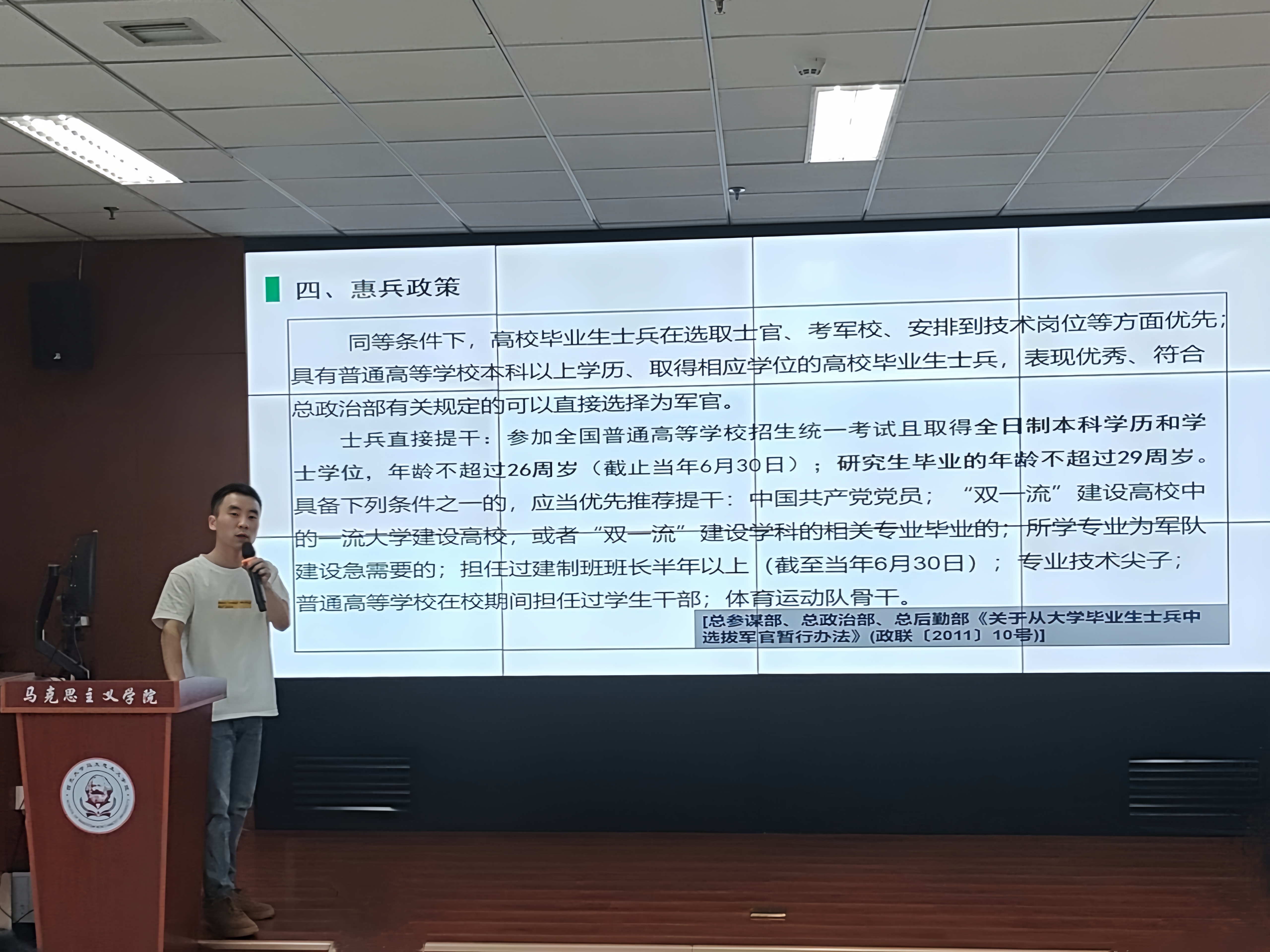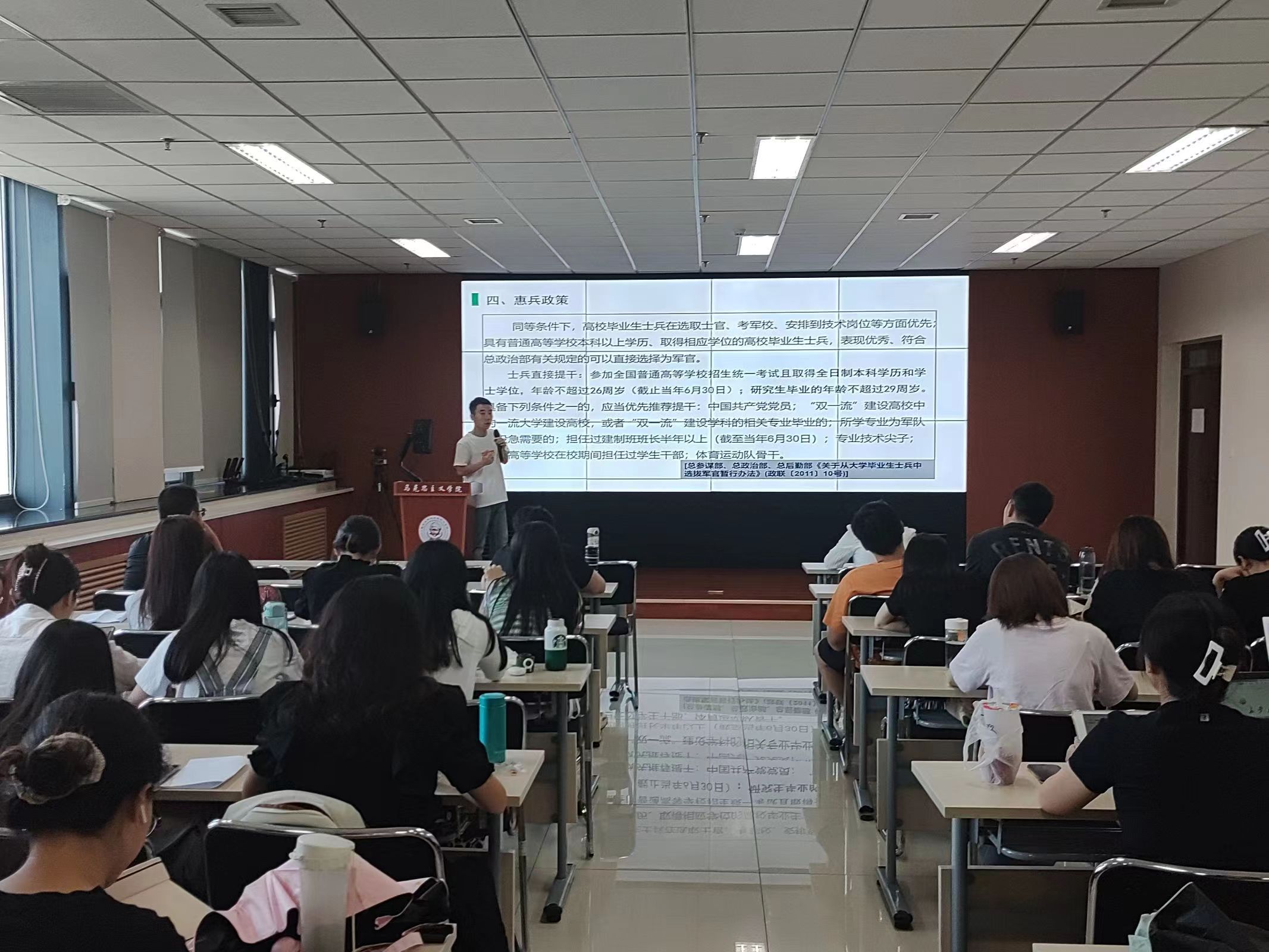 2023年6月13日下午,365英国上市网站官网开展“执笔为戈,筑梦军营”征兵政策宣讲会。宣讲会由365英国官网退伍大学生士兵、2022级硕士研究生刘志晨主持。