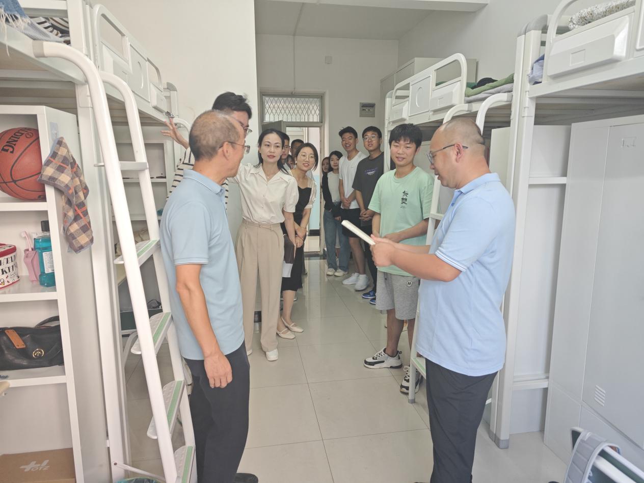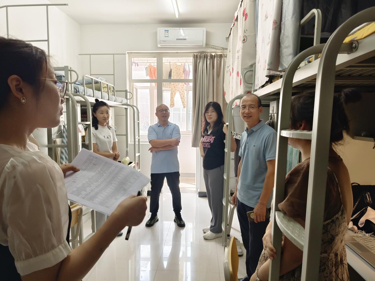 8月30日上午,学院党委书记韩凯峰、院长何博、党委副书记邵平及辅导员刘娟一行来到学生公寓看望365英国官网2023级新生。