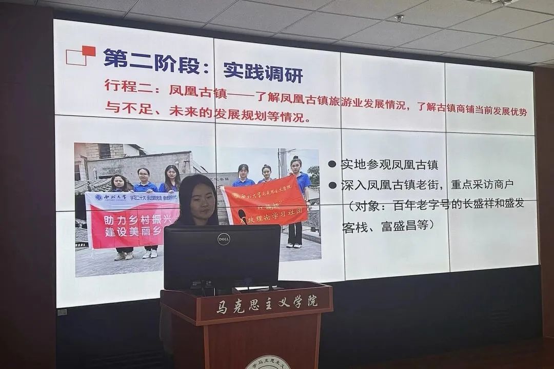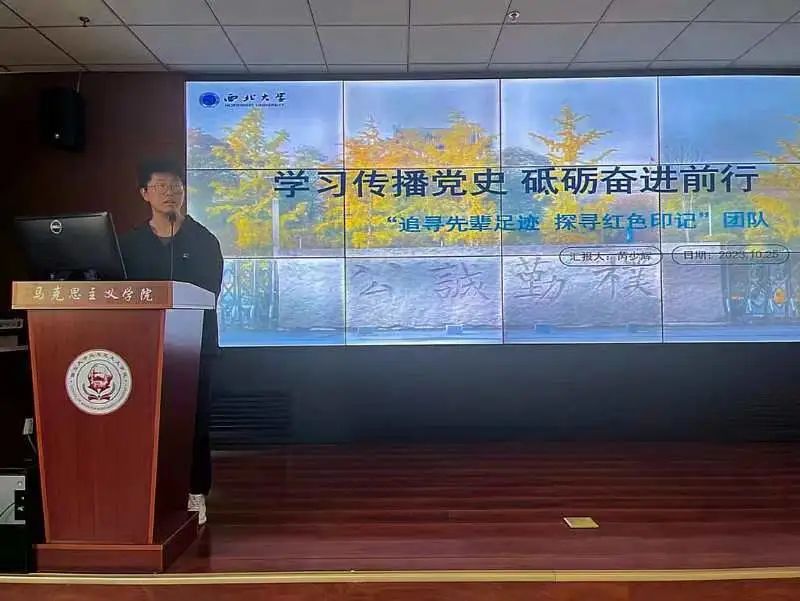 “追寻先辈足迹,探寻红色印记”社会实践团队首先展示了项目成果,其次提出应当从团队成员共同的兴趣出发选取有价值、有意义的题材,最后鼓励大家在推进项目的过程中不断思考以丰富自身的学识。