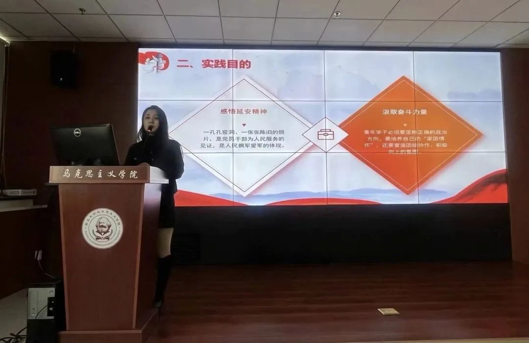 “感悟延安精神,汲取奋斗力量”社会实践团队从行程安排、成果展示两方面进行分享。该团队通过参观延安革命纪念馆、凤凰山革命旧址等地深刻学习党史,领悟延安精神。同时也提到要深入领会理论联系实际的重要意义,强调团队协同合作的必要性。