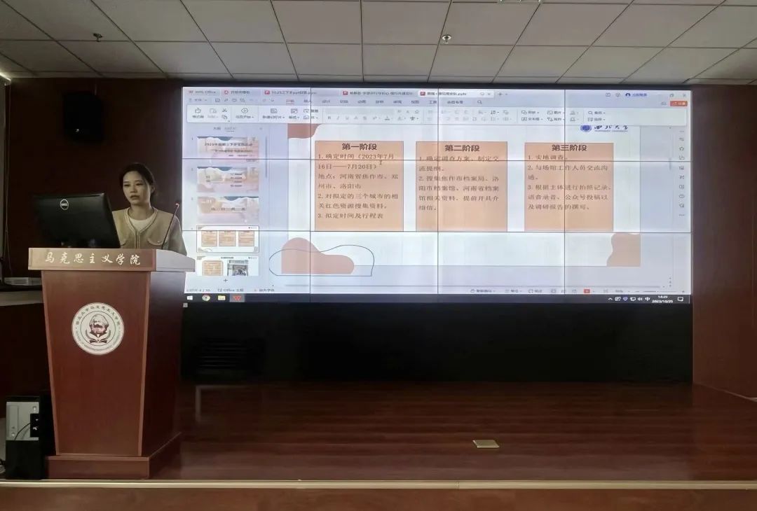 “豫见党史”社会实践团队从学习传播中共党史的角度出发,将实践的目的地选择在了河南省,分享了他们前期策划准备、实地考察以及后期的总结投稿三个阶段工作的具体情况,强调一定要做好扎实的前期调查准备工作。