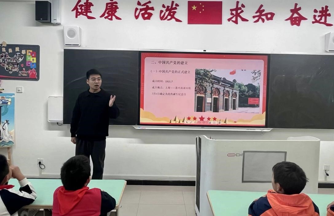 王金富以《没有共产党就没有新中国》为题,为同学们讲述了中国共产党成立的知识和相关党史小故事,激发同学们的民族自信心和自豪感,最后鼓励同学们要好好学习,以后报效祖国。