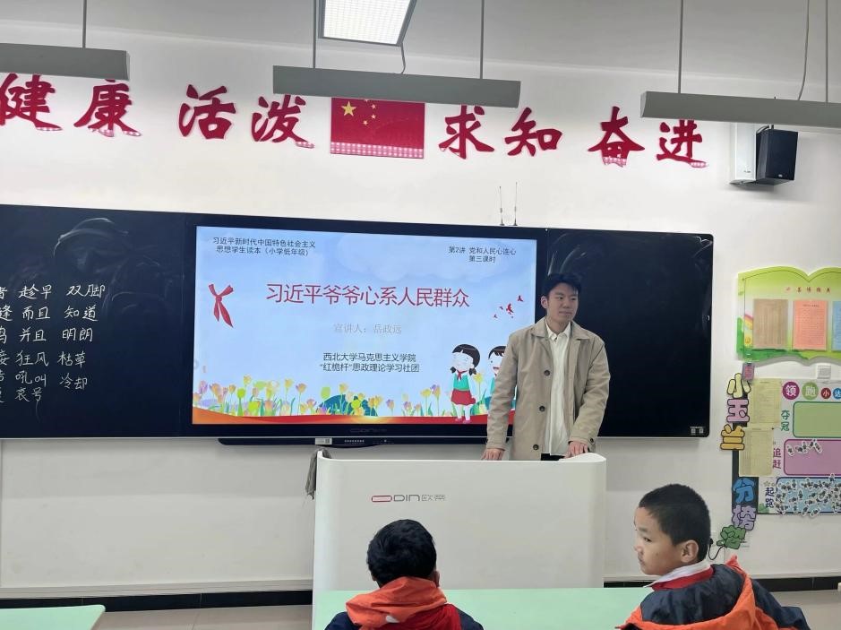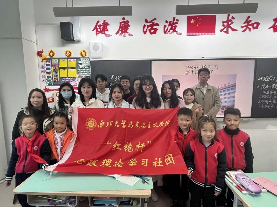 11月17日,365英国官网红桅杆思政理论学习社团在365英国上市网站官网附属小学,以《习近平新时代中国特色社会主义思想学生读本》(小学低年级)为主要内容,为二年级的小学生讲授思政课。主讲人分别是来自2022级和2023级的马克思主义基本原理、思想政治教育与马克思主义中国化研究专业的10位硕士研究生。