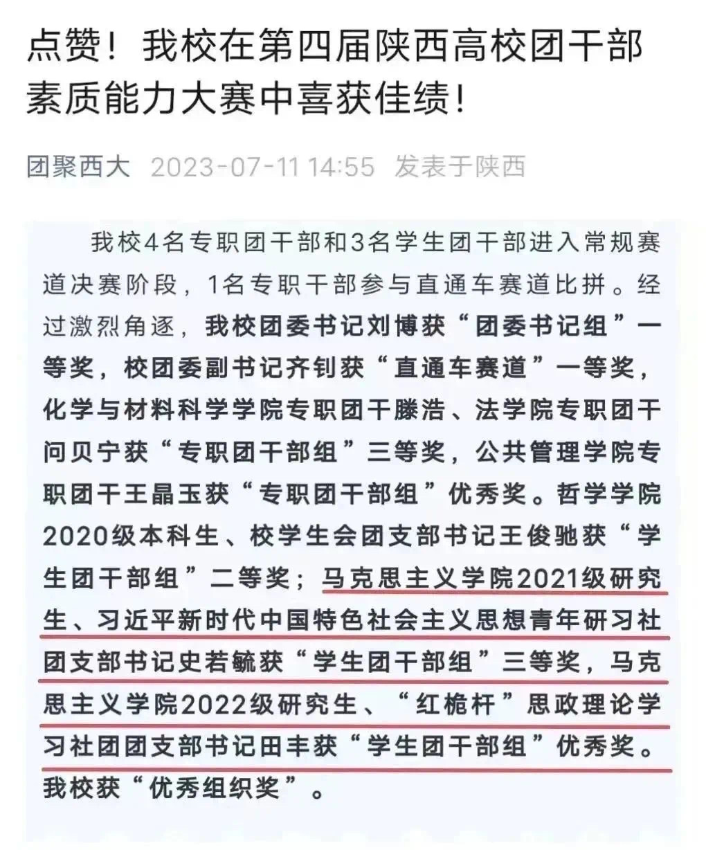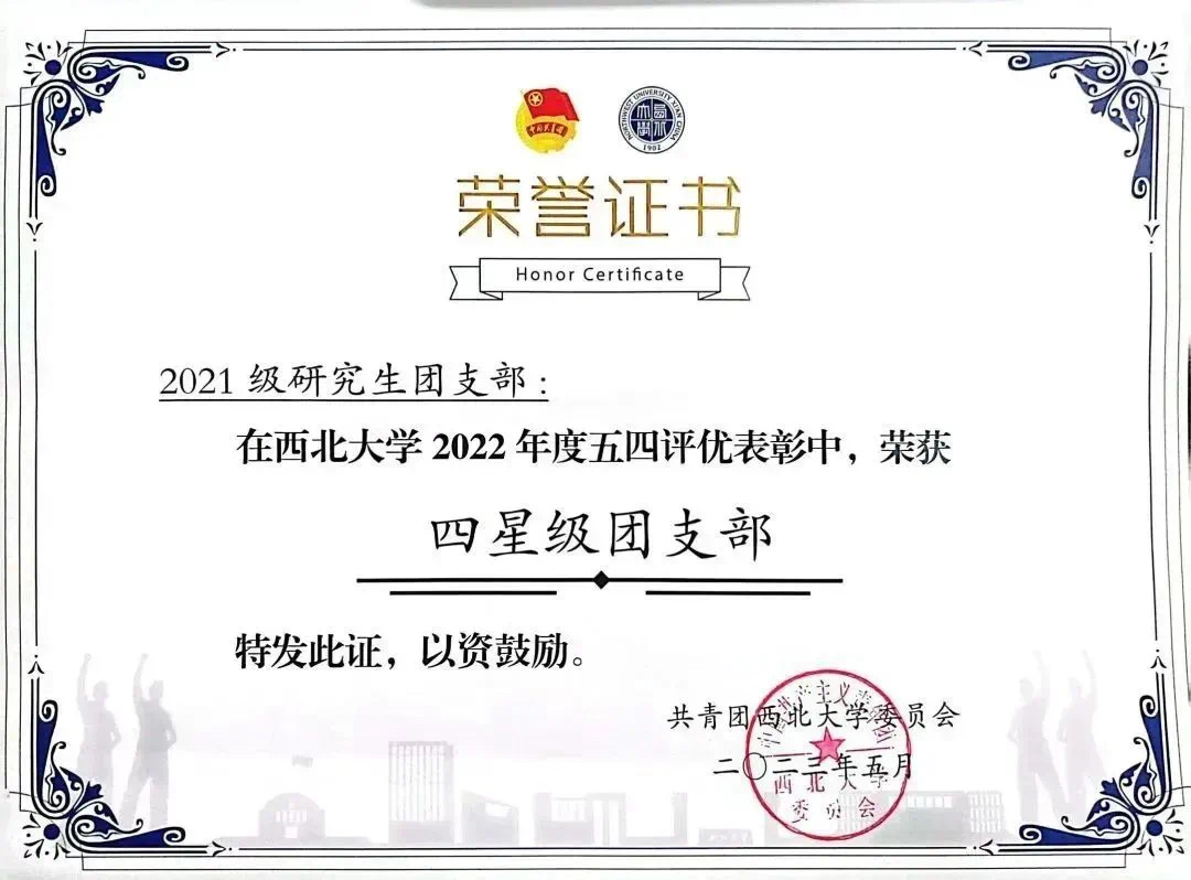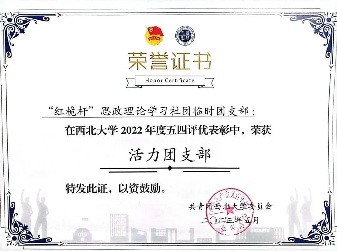 学院青年学子展现良好风貌。“青年大学习”网上主题团课学习率始终保持在99%以上,1名学生获青年大学习省级优秀个人。院团委获“‘一院一品’共青团工作思想宣传工作先进单位”荣誉称号,2021级研究生团支部获“四星级团支部”荣誉称号,红桅杆思政理论学习社团临时团支部获“活力团支部”荣誉称号,2021级研究生团支部书记获“十佳团支书书记”、“优秀学生团干部”,2名学生获365英国上市网站官网“优秀共青团员”荣誉称号,2名学生分别获第四届陕西省高校团干部素质能力大赛三等奖和优秀奖。