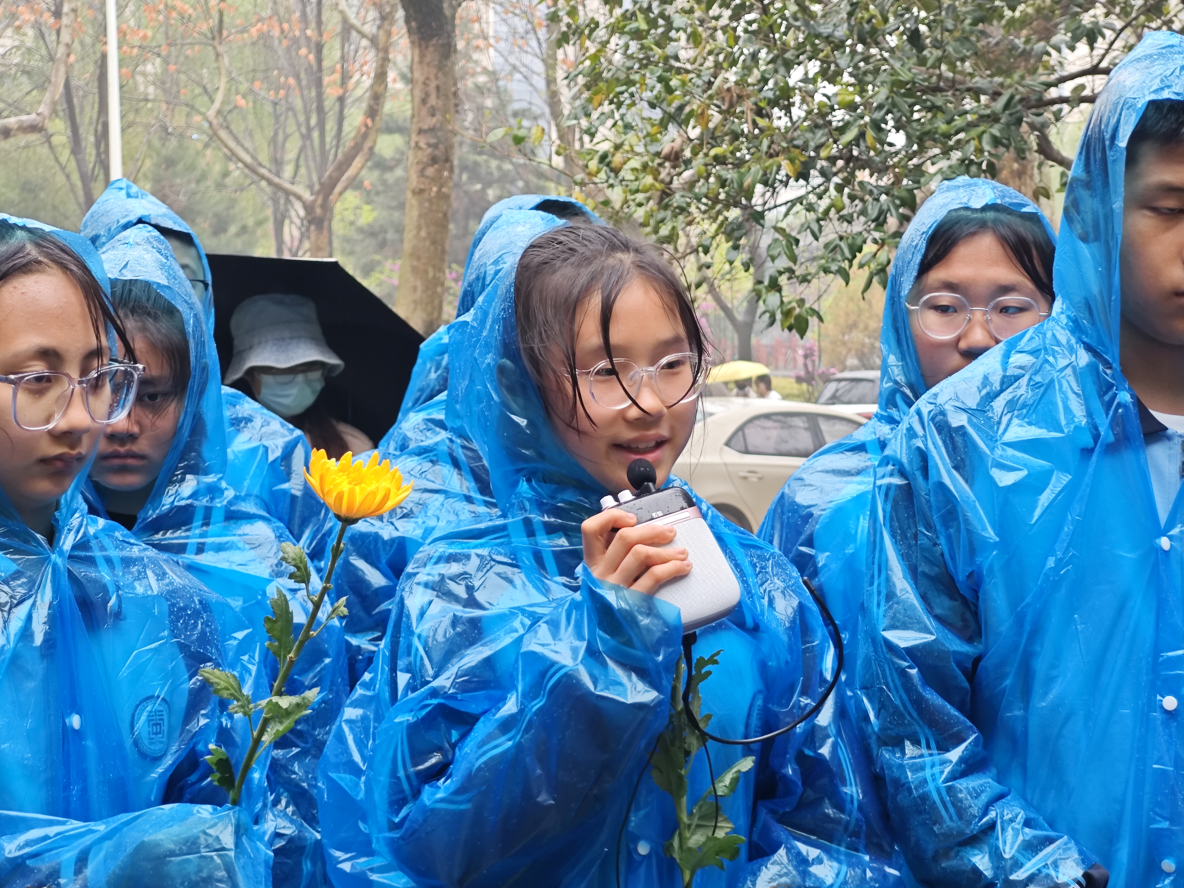 活动第一阶段,红桅杆思政理论学习社团成员为中学生讲述老一辈科学家的先进事迹。在优秀校友罗健夫的雕像前,社团成员黄雅利为同学们讲述了罗健夫的生平事迹,并以他一生淡泊名利治学、勤勤恳恳工作、踏实低调做人的精神和品格鼓舞同学们学习他坚韧不拔的科学精神。在水利学家、教育学家李仪祉的雕像前,社团成员崔艳文为同学们讲述了他在国家危难之时,赴海外努力学习先进科学技术,回国后以科技报国的事迹,并以此鼓励同学们树立努力学习报效祖国的理想信念。随后,同学们为两位科学家献上鲜花以寄哀思。