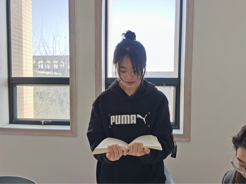 杨姣同学结合近期学习和个人思考,汇报了两点体会。一是要坚定理想信念。作为青年学生,要刻苦钻研马克思主义基本原理特别是新时代党的创新理论,做到知其言更知其义、知其然更知其所以然。二是要全面加强修养。青年学生要涵养道德操守,坚守原则不退缩,坚定信念不动摇,面对困难敢于迎难而上,做起而行之的行动者。