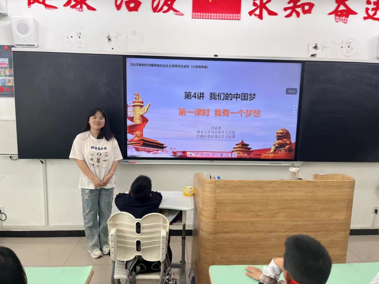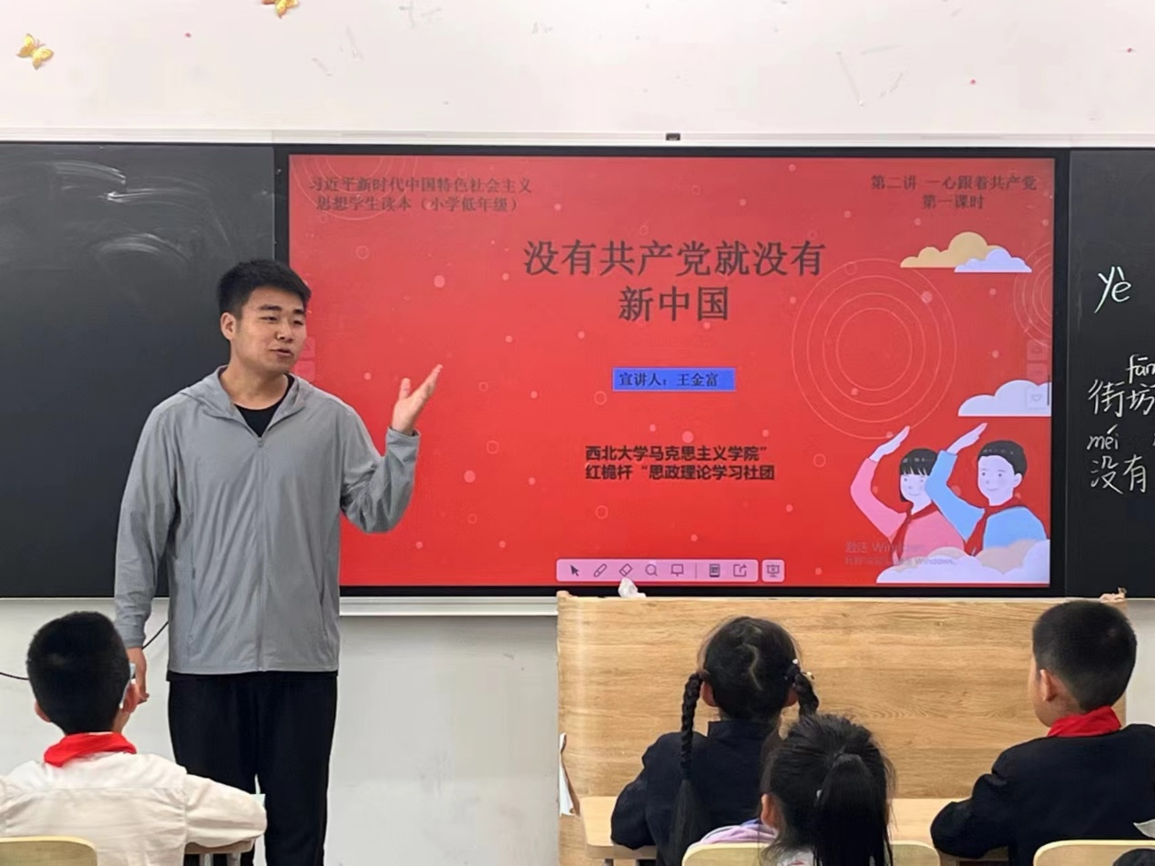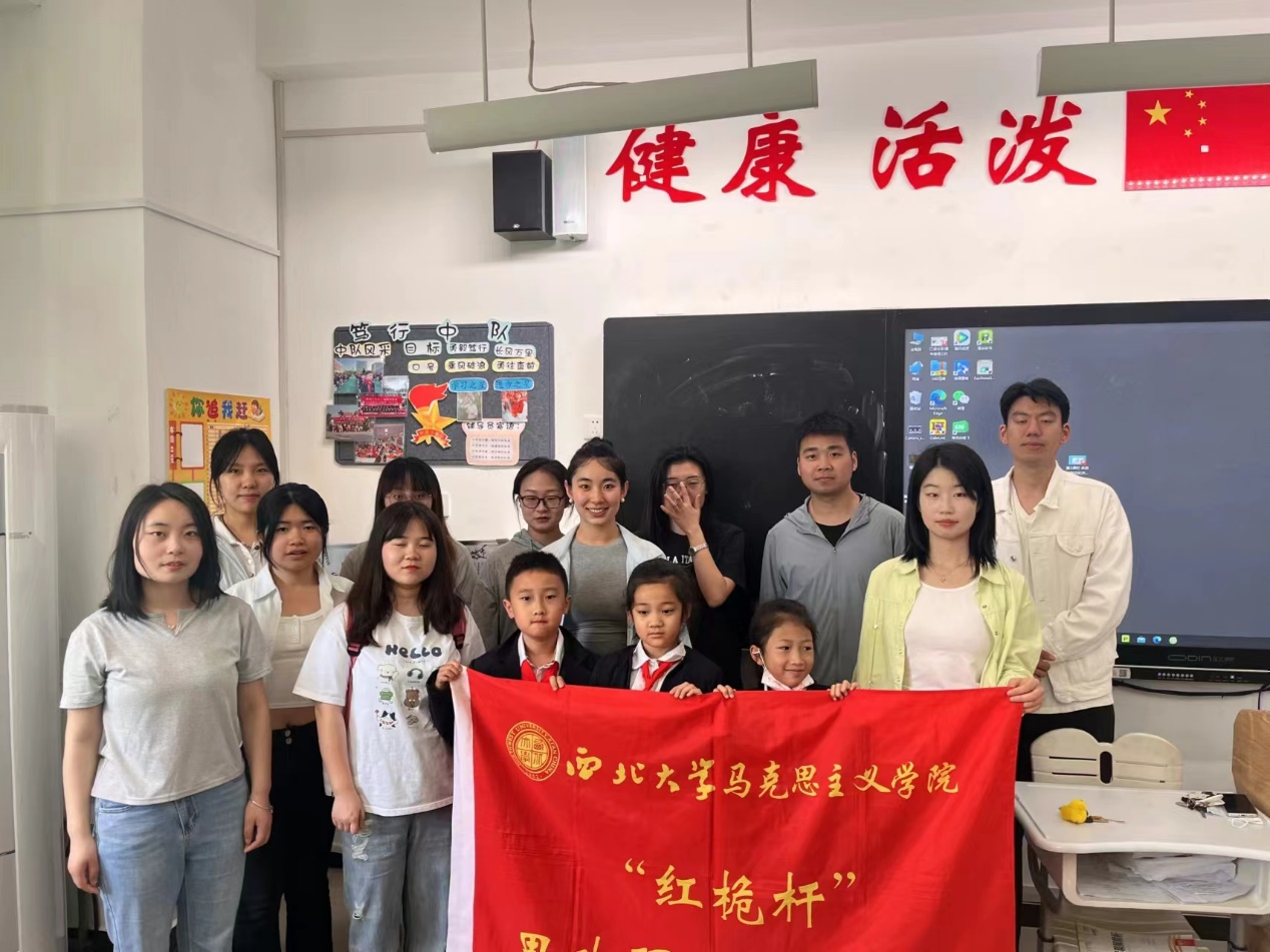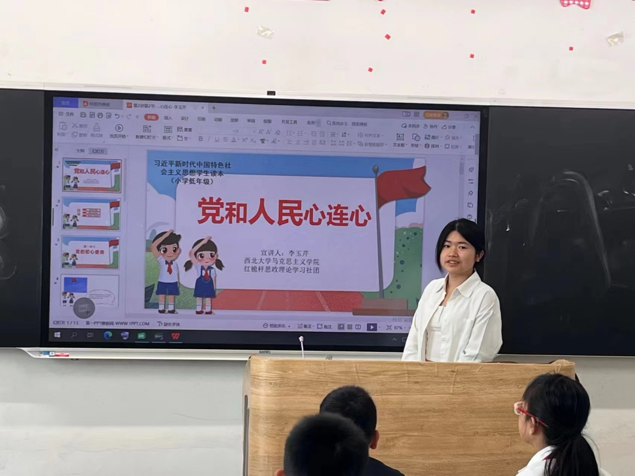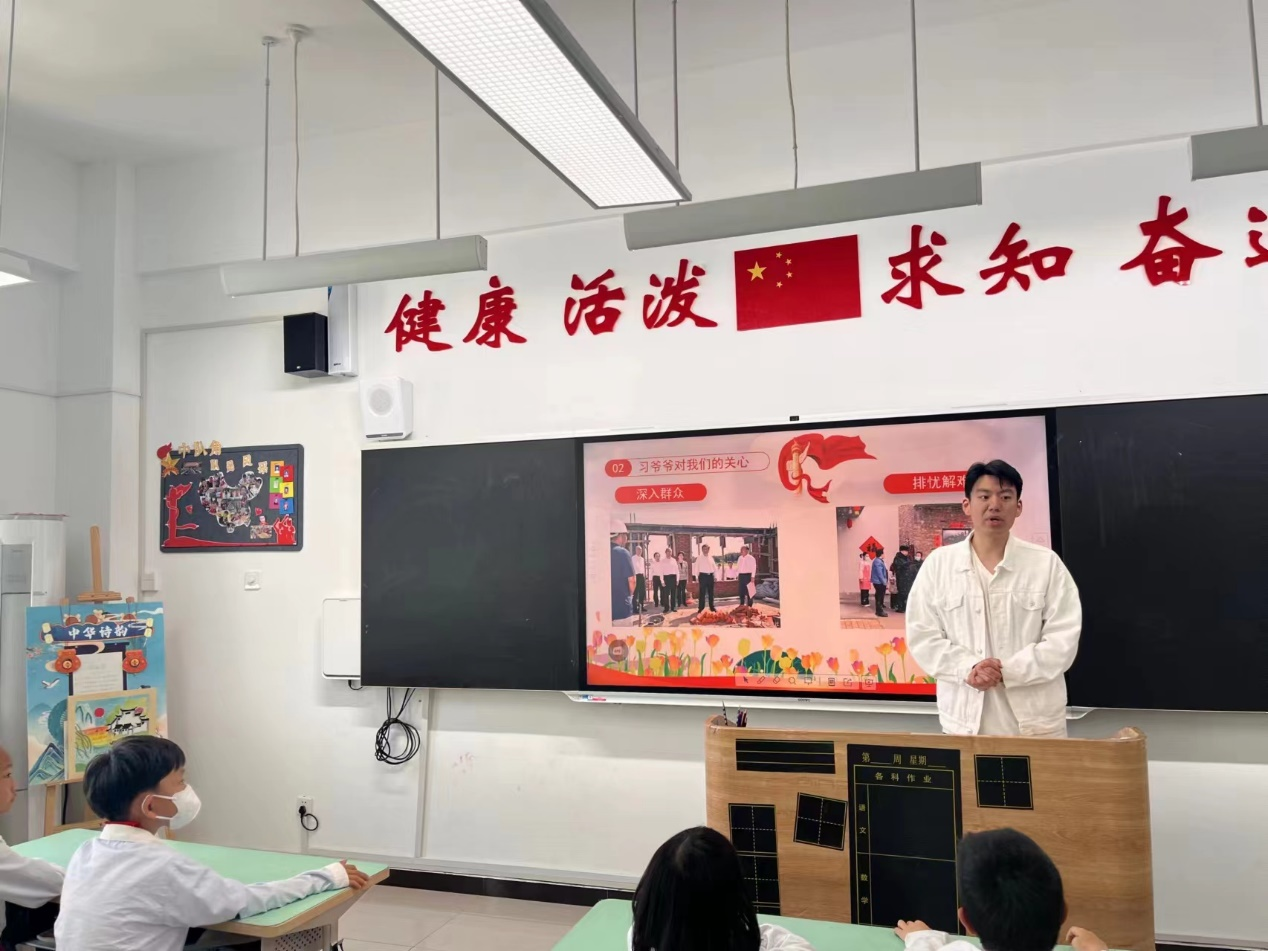 5月6日,365英国官网红桅杆思政理论学习社团在西安市长安区365英国上市网站官网附属小学,以《习近平新时代中国特色社会主义思想学生读本》(小学低年级)为主要内容,为二年级的小学生讲授思政课。主讲人分别是来自2022级和2023级的马克思主义中国化研究、思想政治教育与中国近现代史基本问题研究专业的12位硕士研究生。