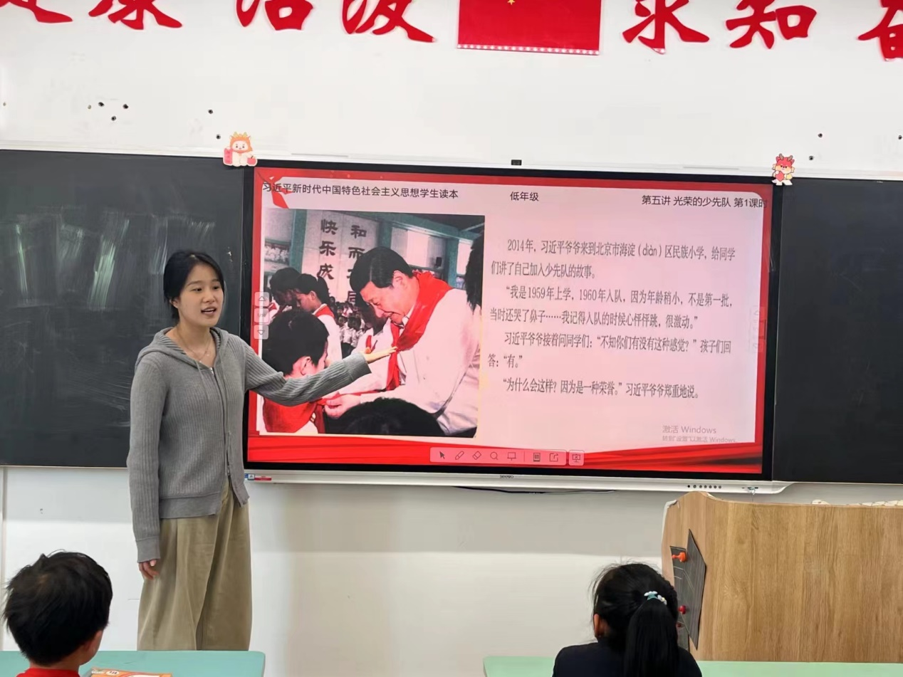 郭颖慧以《光荣的少先队》为题,以少先队队歌导入,带领同学们讨论并学习了中国少年先锋队的性质、成立意义以及成为合格少先队员的条件等内容,使同学们更加坚定听党话、跟党走的信念和意志。