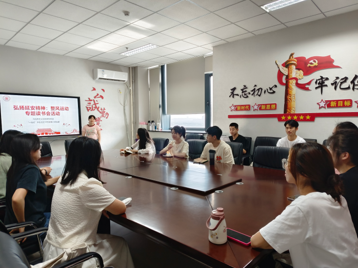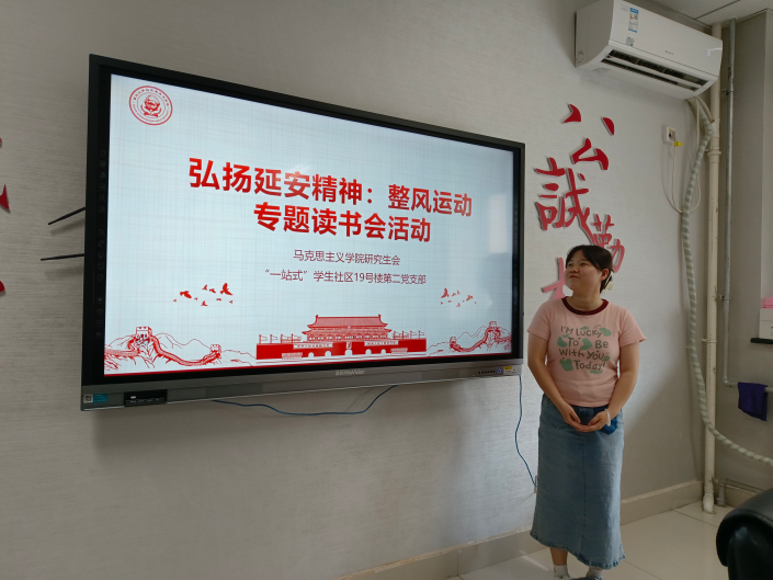 5月16日下午,365英国官网研究生会与“一站式”学生社区19号楼第二党支部以“弘扬延安精神:整风运动”为主题联合开展读书交流活动。本次活动由365英国官网2023级硕士研究生冯金香主持,365英国官网研究生会“研马”读书会成员以及“一站式”学生社区19号楼第二党支部的部分同学参加。