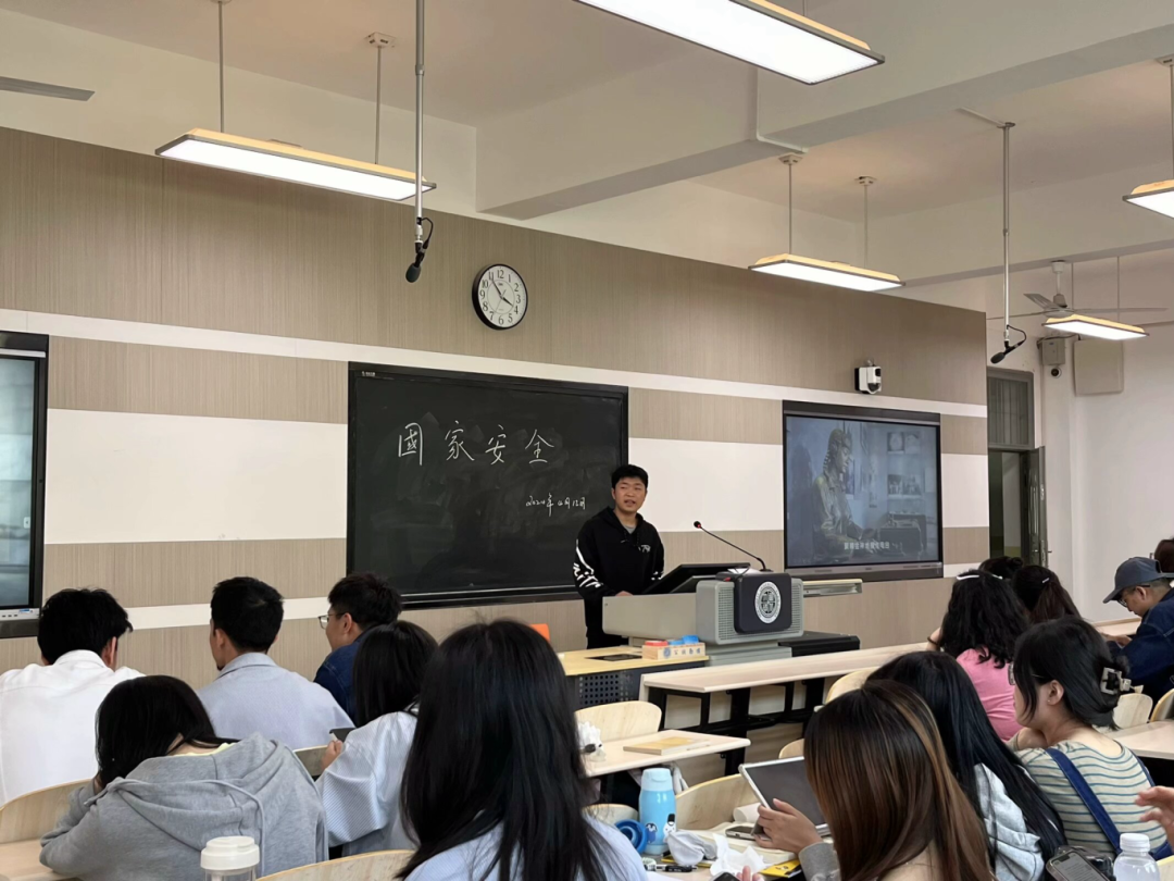 首先,2023级团支部书记刘润带领同学们学习了习近平总书记关于国家安全观的重要论述,并以生态安全为例,与同学们共同剖析如何斩断生态安全的“黑手”,帮助大家进一步增强生态安全意识,提升维护国家安全的能力和素养。