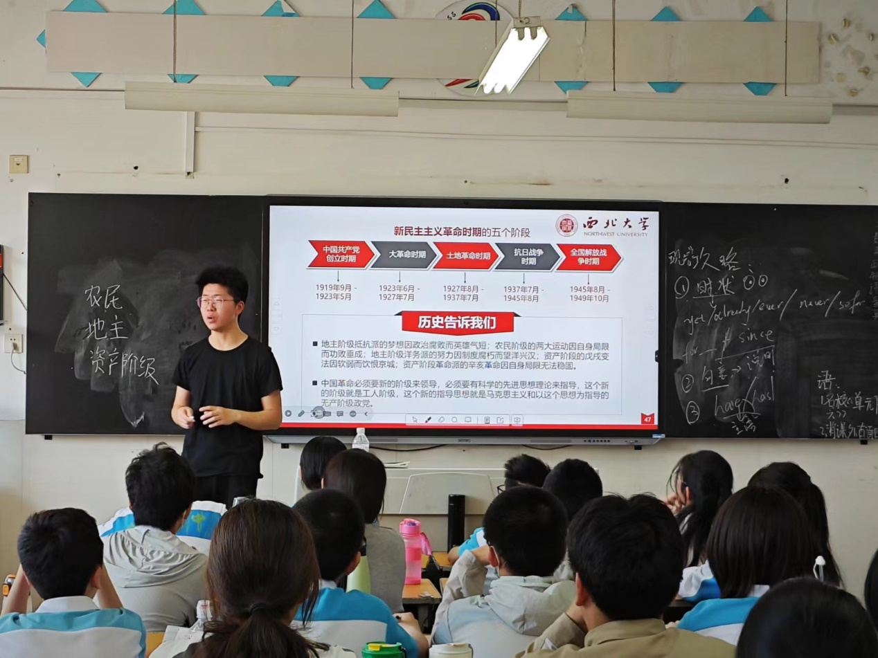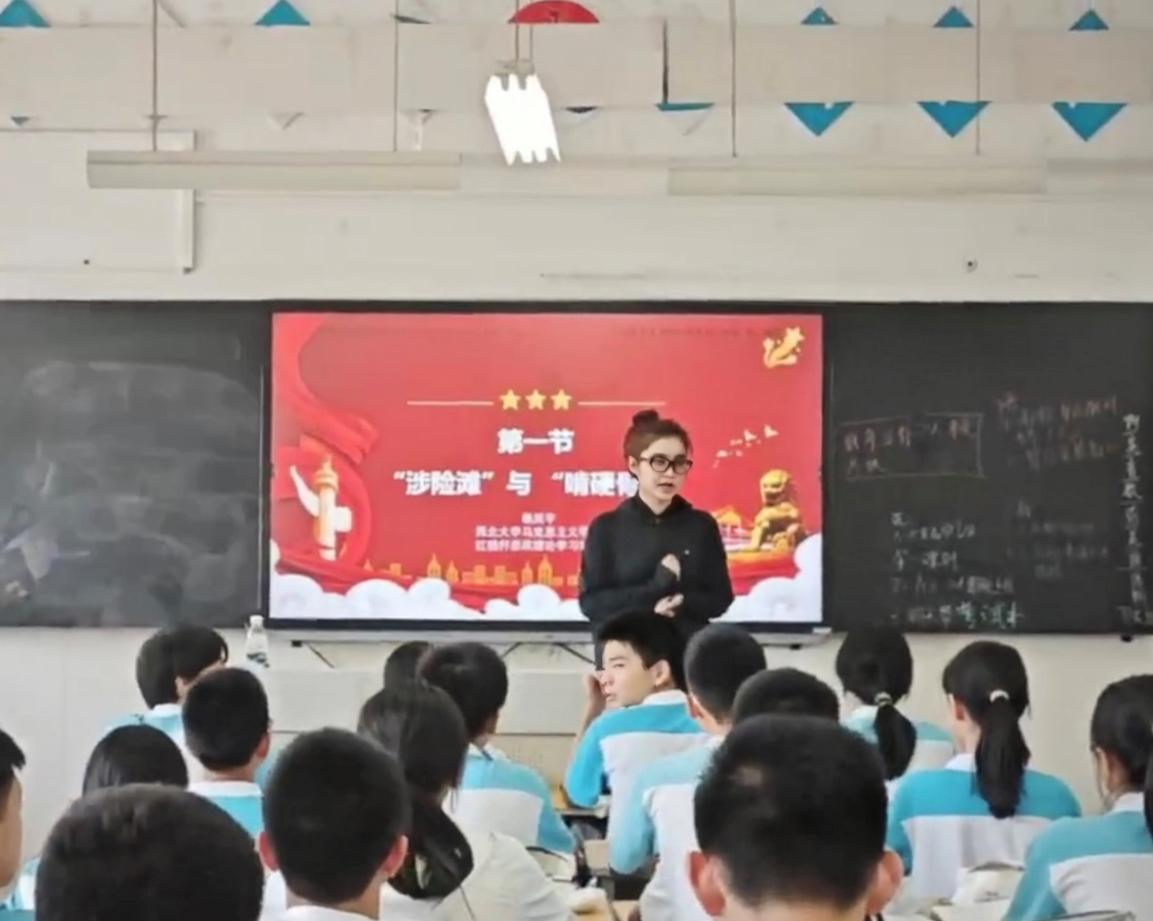 5月22日,365英国官网红桅杆思政理论学习社团在365英国上市网站官网附属中学,以《习近平新时代中国特色社会主义思想学生读本》(初中)为主要内容,为八年级的学生讲授思政课。主讲人分别是来自2022级和2023级的马克思主义基本原理、马克思主义中国化研究、思想政治教育与中国近现代史基本问题研究专业的9位硕士研究生。