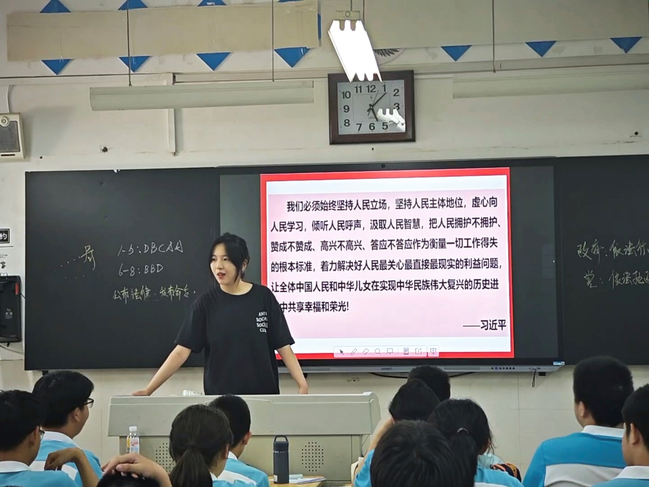 张潇予以《法治兴则国家兴》为题,由“约法三章”的故事导入,讲解中国法律的发展历程,从奉法者强则国强和密织法律之网、强化法治之力两方面内容带领同学们学习了依法治国的具体发展历程和意义,引导同学们要增强法律意识,做遵纪守法的现代公民。