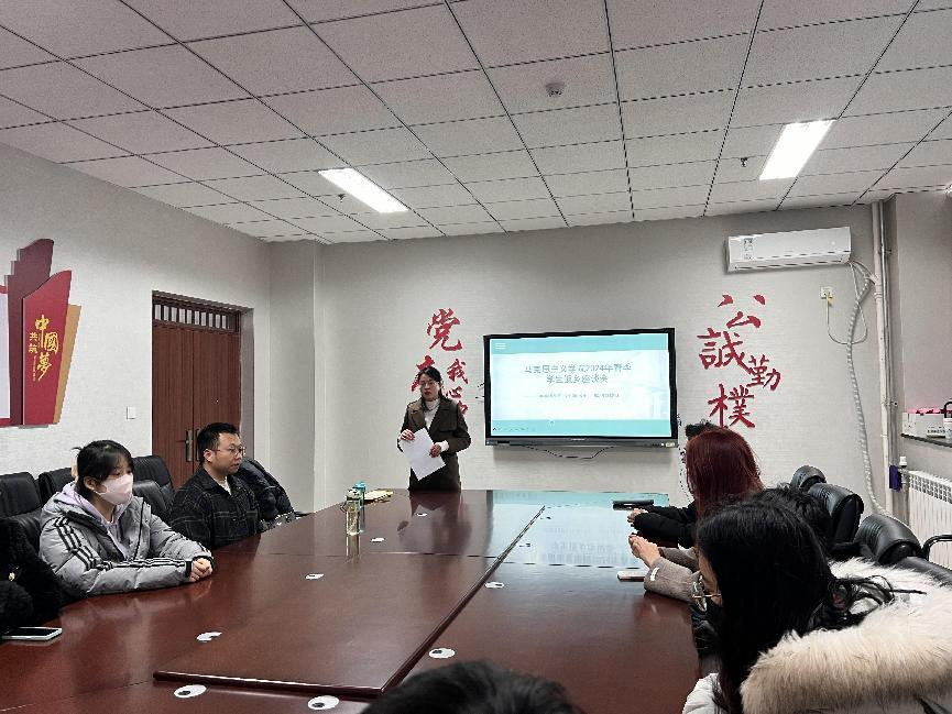 郭莹老师询问了班级同学们近期的毕业论文以及就业情况。对于思想负担较重的个别同学,她及时进行疏解并提到,在研三的最后一个学期,同学们要以积极乐观的心态客观看待问题,按部就班把握自己的学习和生活节奏,加强自律意识,对自己的学习生活要有明确的规划,找准发展目标和定位并从自身实力出发去择业。