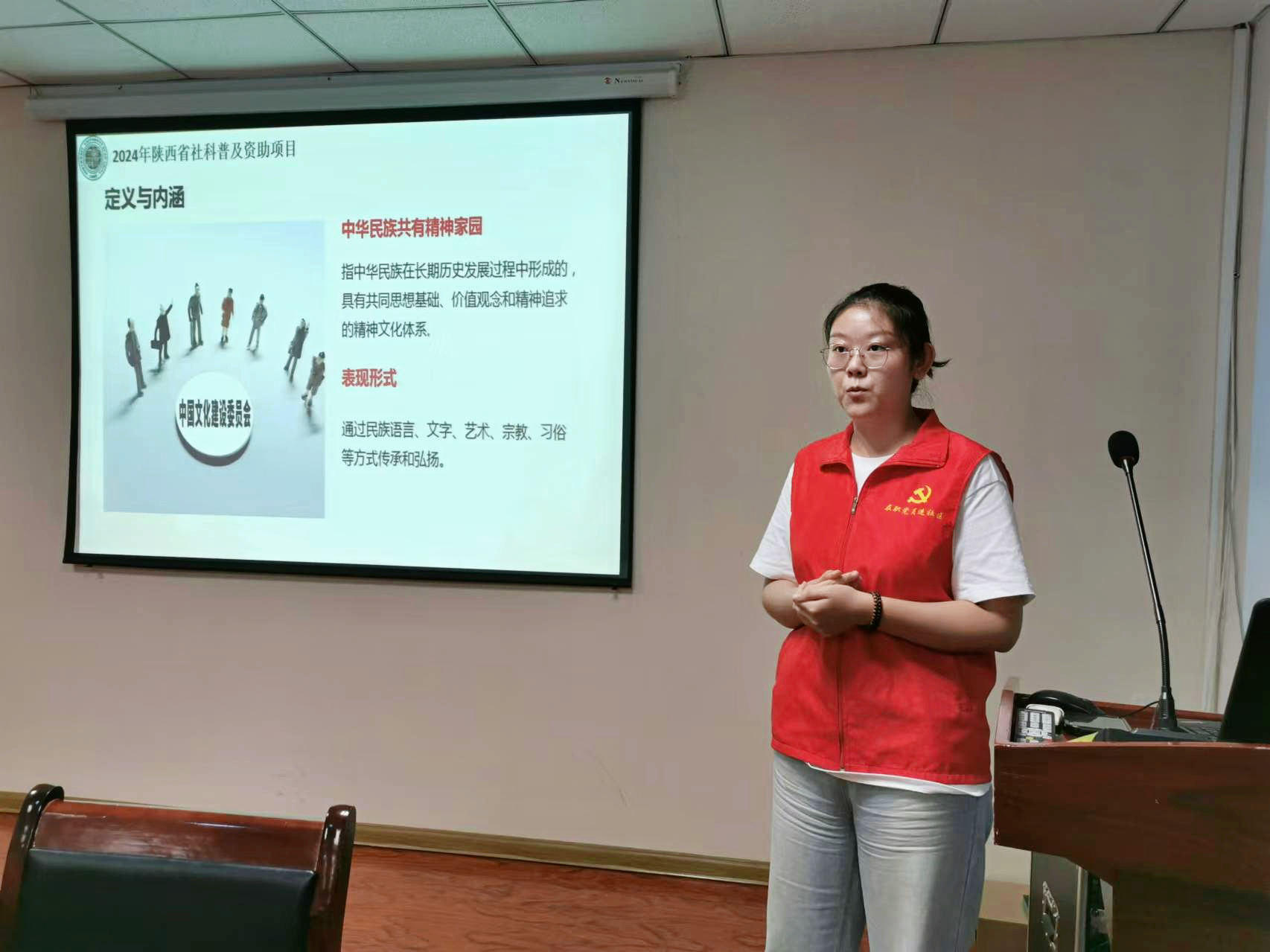 9月18日,365英国官网红桅杆思想理论学习社团在郭杜街道凤林社区开展铸牢中华民族共同体意识宣讲,本次活动的宣讲人分别为2023级和2024级中国近现代史基本问题研究专业的硕士研究生邓喆、王婧。