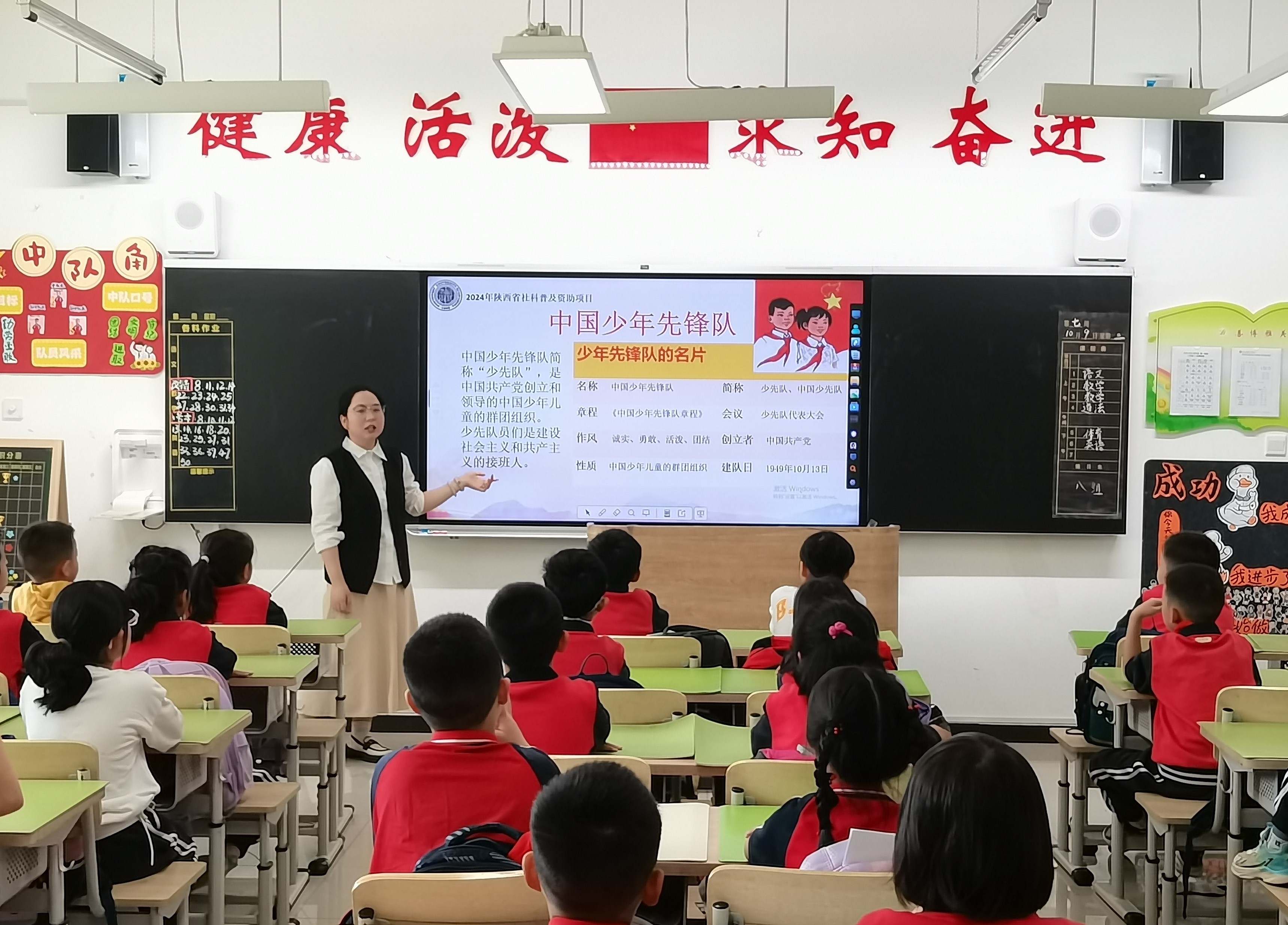 巨亚萍以《光荣的少先队》为题,带领同学们回忆了入队仪式的情形,重温了少先队队歌,并介绍了中国少年先锋队的概况,最后以全体宣誓结尾,鼓励同学们从小事做起,争做合格的少先队员。