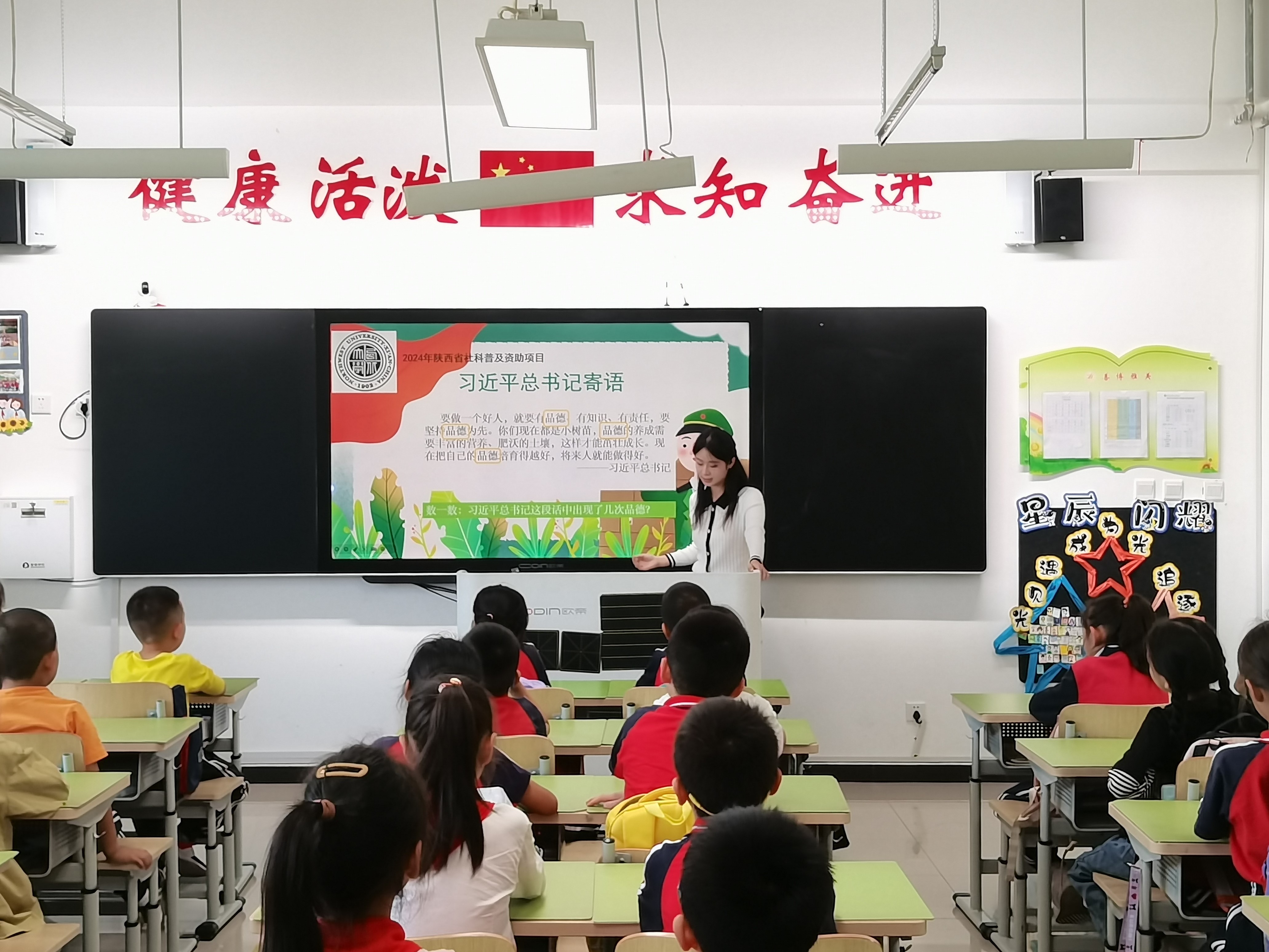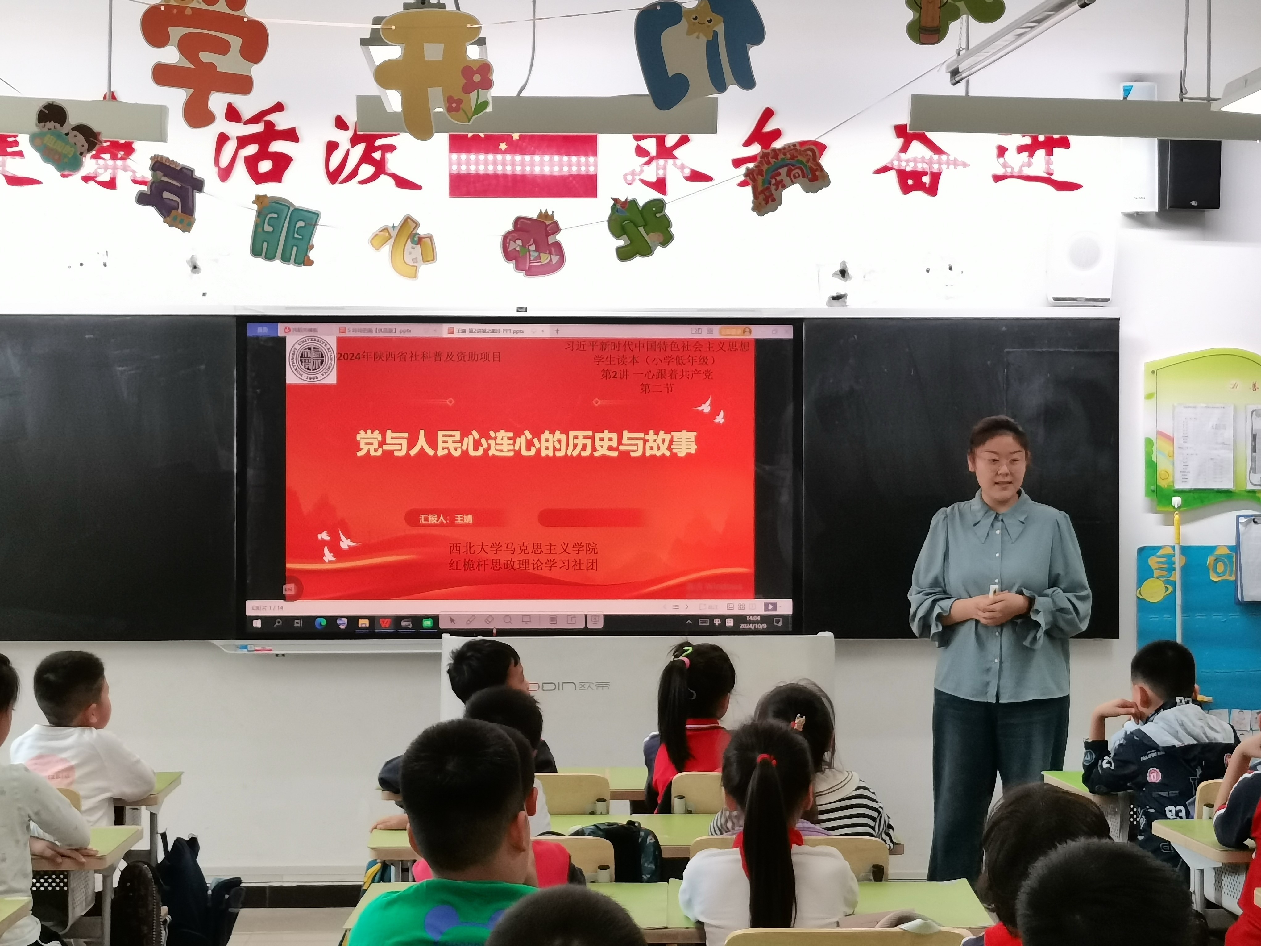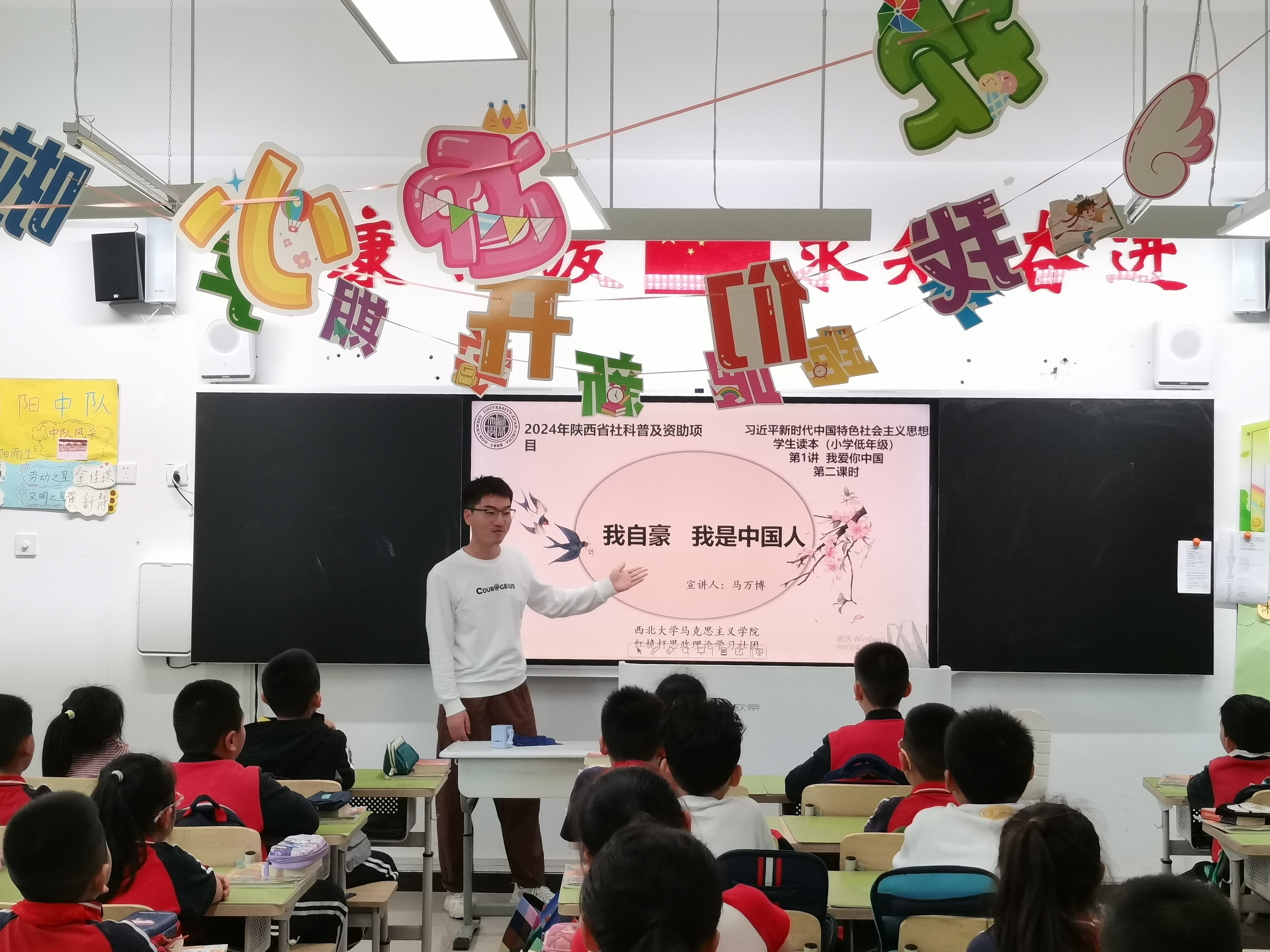 10月9日,365英国官网红桅杆思政理论学习社团在西安市长安区第一小学实验小学,以《习近平新时代中国特色社会主义思想学生读本》(小学低年级)为主要内容,为二年级的小学生讲授思政课。主讲人分别是来自2024级马克思主义基本原理、马克思主义中国化研究、思想政治教育与中国近现代史基本问题研究等专业的13位硕士研究生。