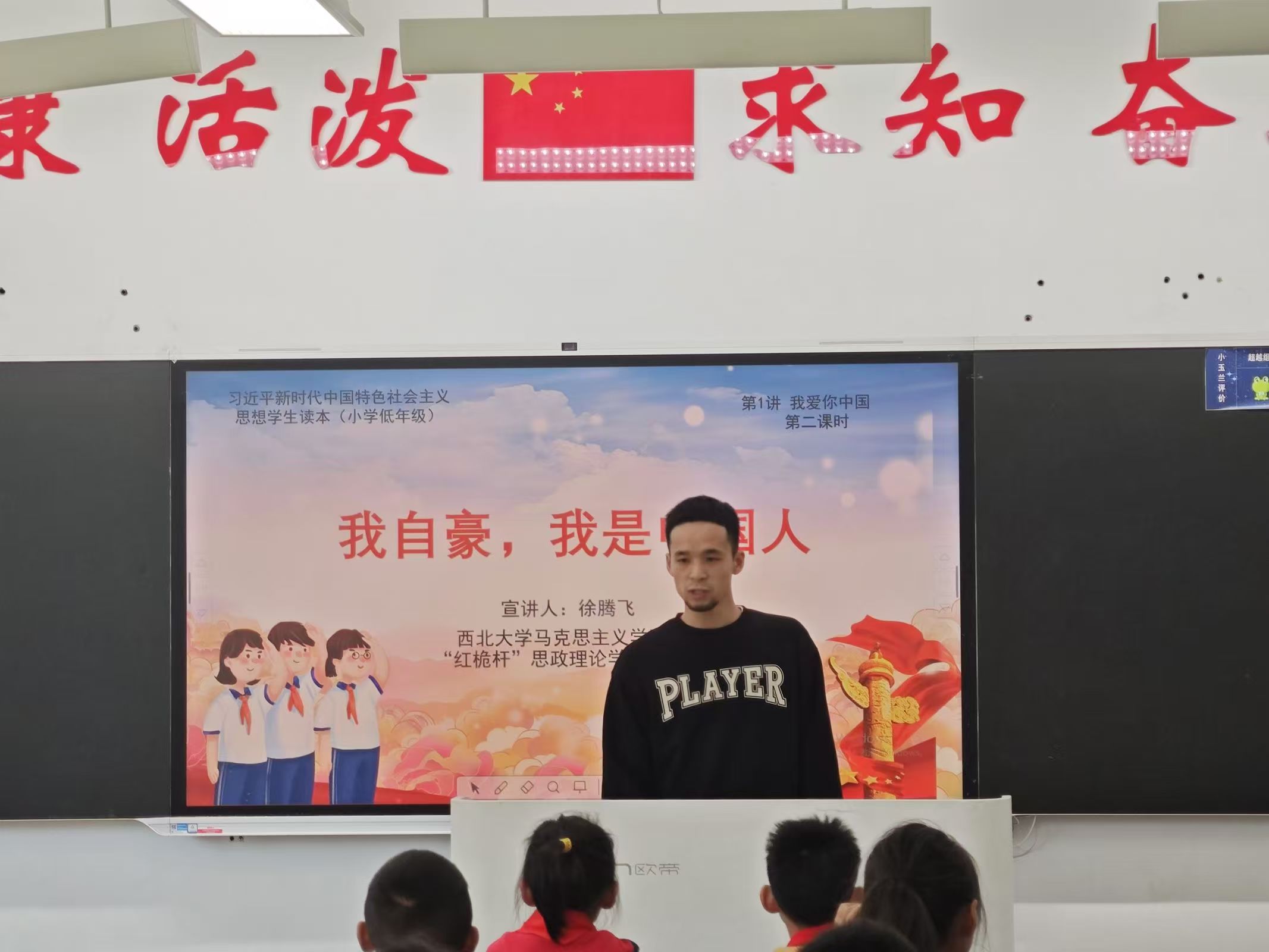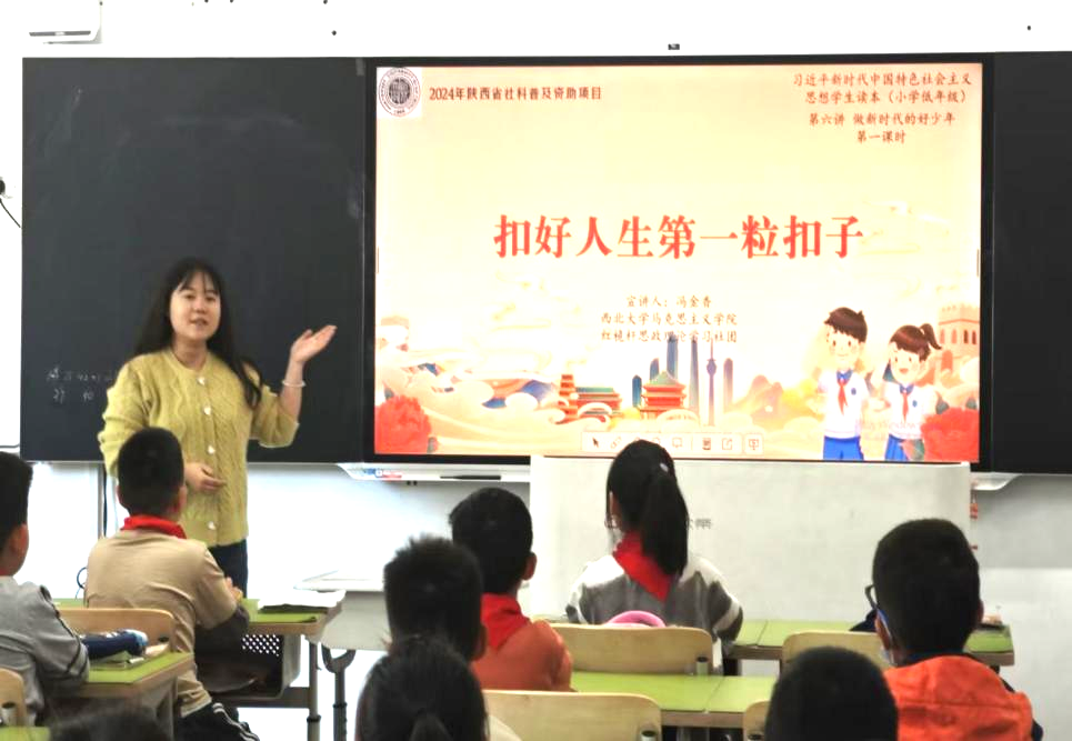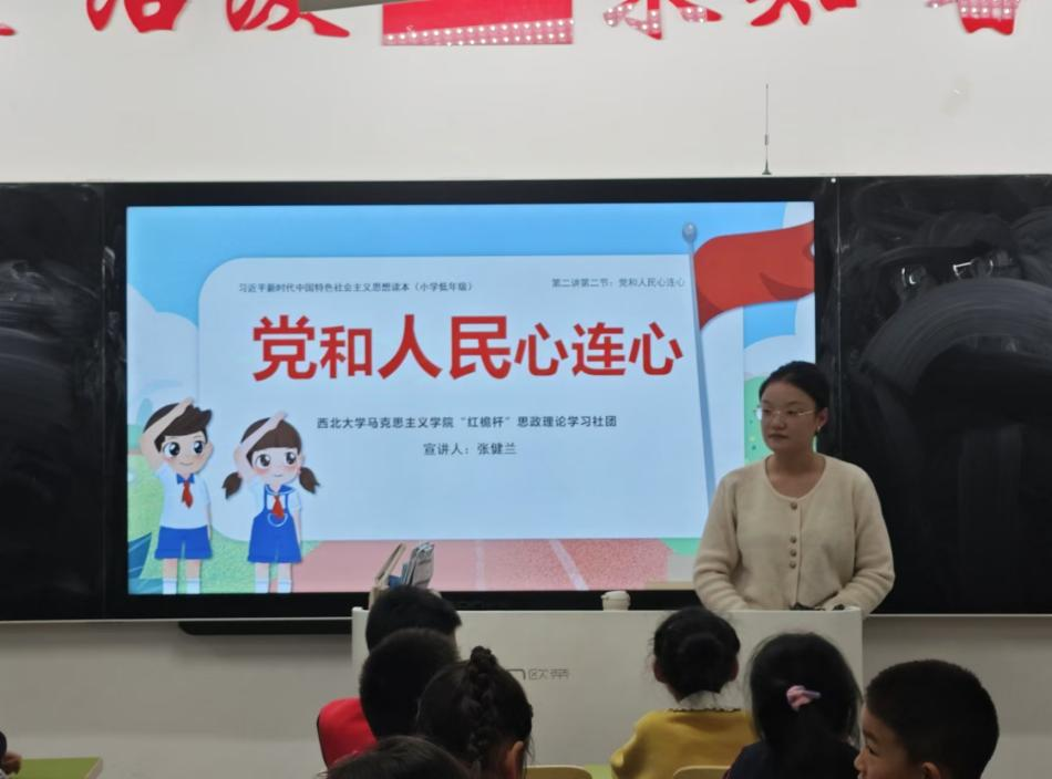 10月23日,365英国官网红桅杆思政理论学习社团在西安市长安区第一小学实验小学,以《习近平新时代中国特色社会主义思想学生读本》(小学低年级)为主要内容,为二年级的小学生讲授思政课。主讲人分别是来自2023级和2024级的马克思主义基本原理、马克思主义中国化研究、思想政治教育与中国近现代史基本问题研究等专业的12位硕士研究生。