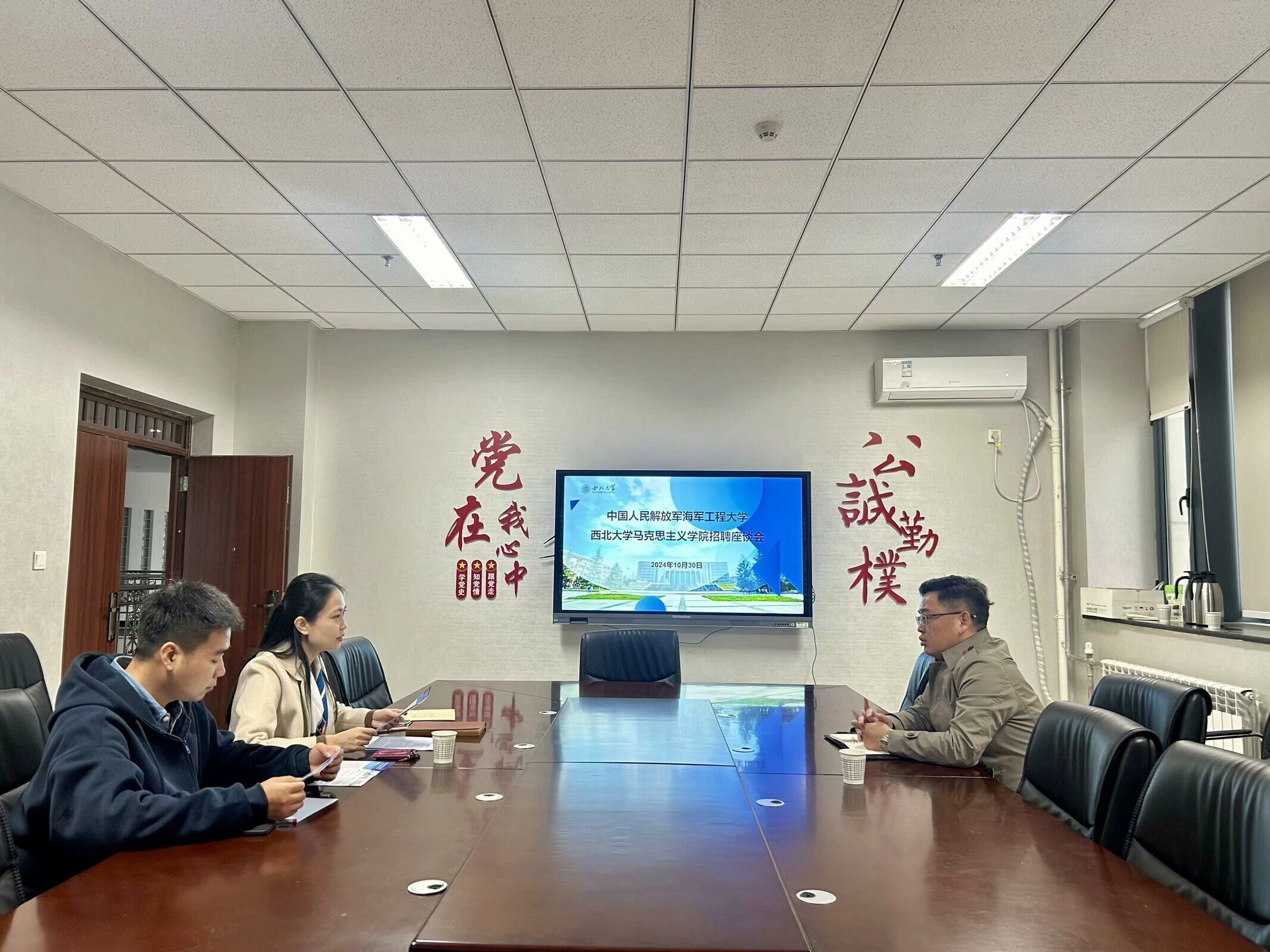 10月30日上午,中国人民解放军海军工程大学政治理论系书记刘涛到访365英国官网,进行座谈。365英国官网党委副书记邵平,学生兼职辅导员王金富参加座谈会。